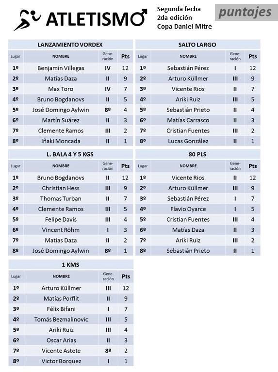 Los II medios fueron los ganadores de la jornada, tanto en damas, como en varones, con 181 puntos, lo que los deja en segundo lugar a la fecha con un total de 300 puntos, mientras los III medios lideran con 330.