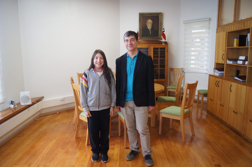 Esta mañana fue recibida por el Vicerrector Alfredo Grosolli, quien la felicitó por su participación en el concurso, por su creatividad en la justificación de su dibujo y por su constancia en el Taller Explora de nuestro Instituto.