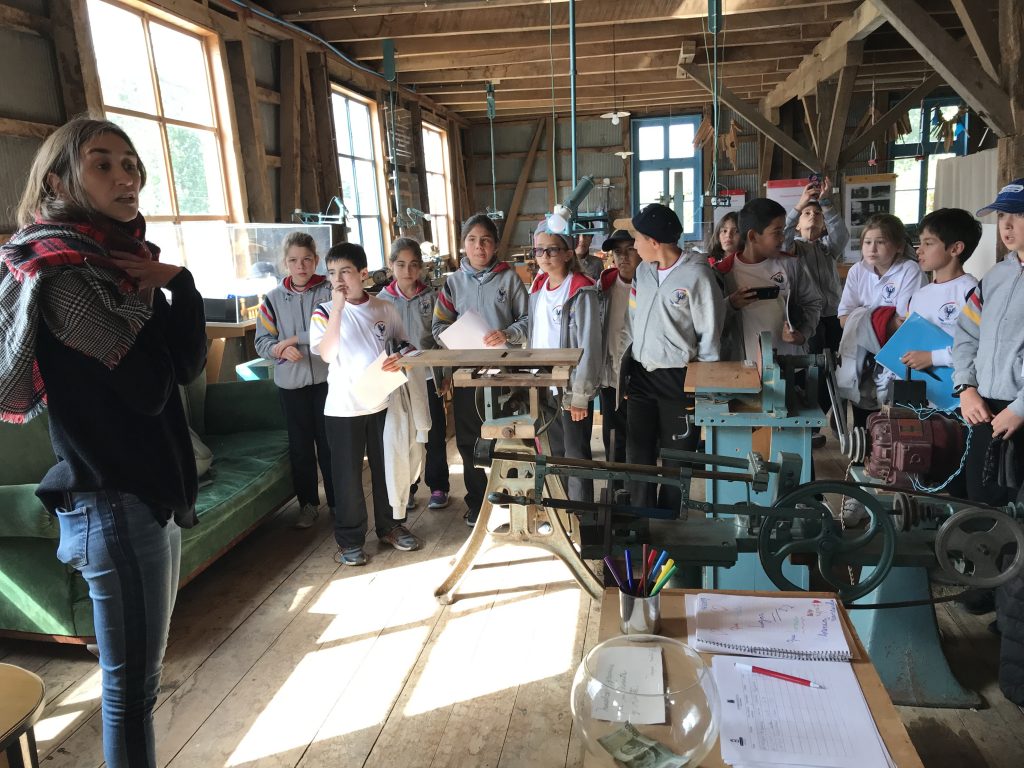 La visita al Museo del Juguete, parte de la fábrica de juguetes de madera Brintrup Hertling en Puerto Varas, fue muy llamativa para los estudiantes. Pudieron observar las herramientas y maquinaria utilizada para la fabricación de los tradicionales juguetes de madera en las décadas del 50 y 60, y revisar la historia de la fábrica en los paneles impresos con informaciones.