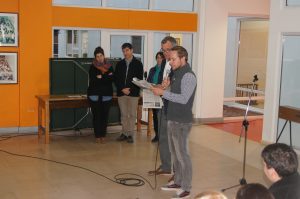 Con la presencia del Vicerrector, Alfredo Grosolli, y de los Directores de Educación Media y Segundo Ciclo Básico, esta mañana se realizó un pequeño acto para dar a conocer y premiar a los cursos que ganaron el Concurso de Audición y de realización de arpilleras, de la Semana de la Educación Artística, que en nuestro colegio se realizó entre el 15 y el 19 de mayo. El acto se llevó a cabo en el fórum de Educación Media en dos turnos: de 5º a 8º básico y de I a IV medio.