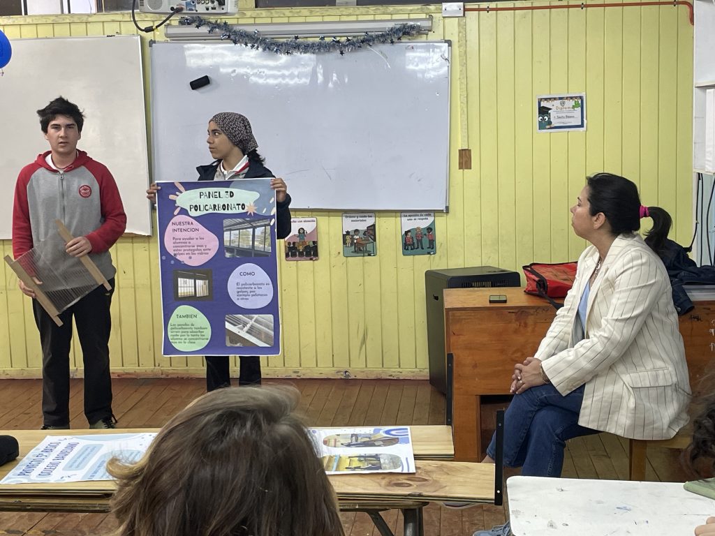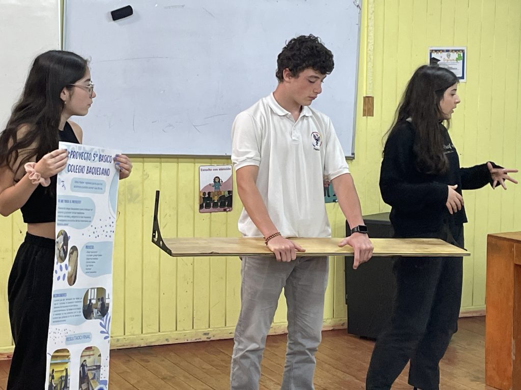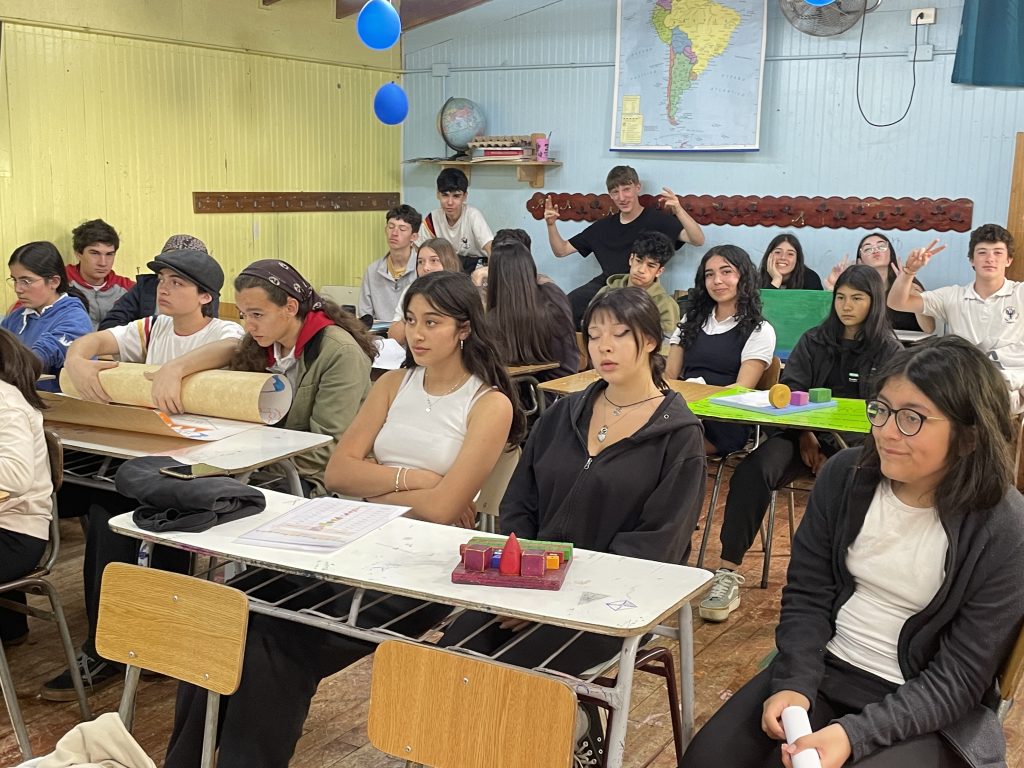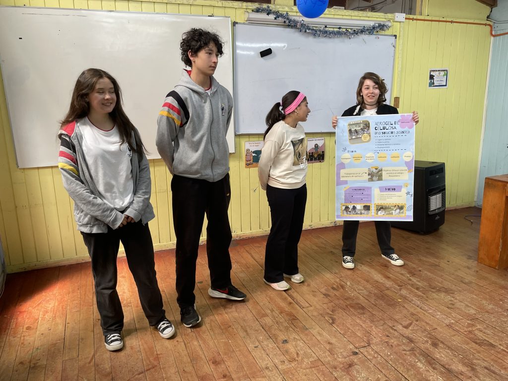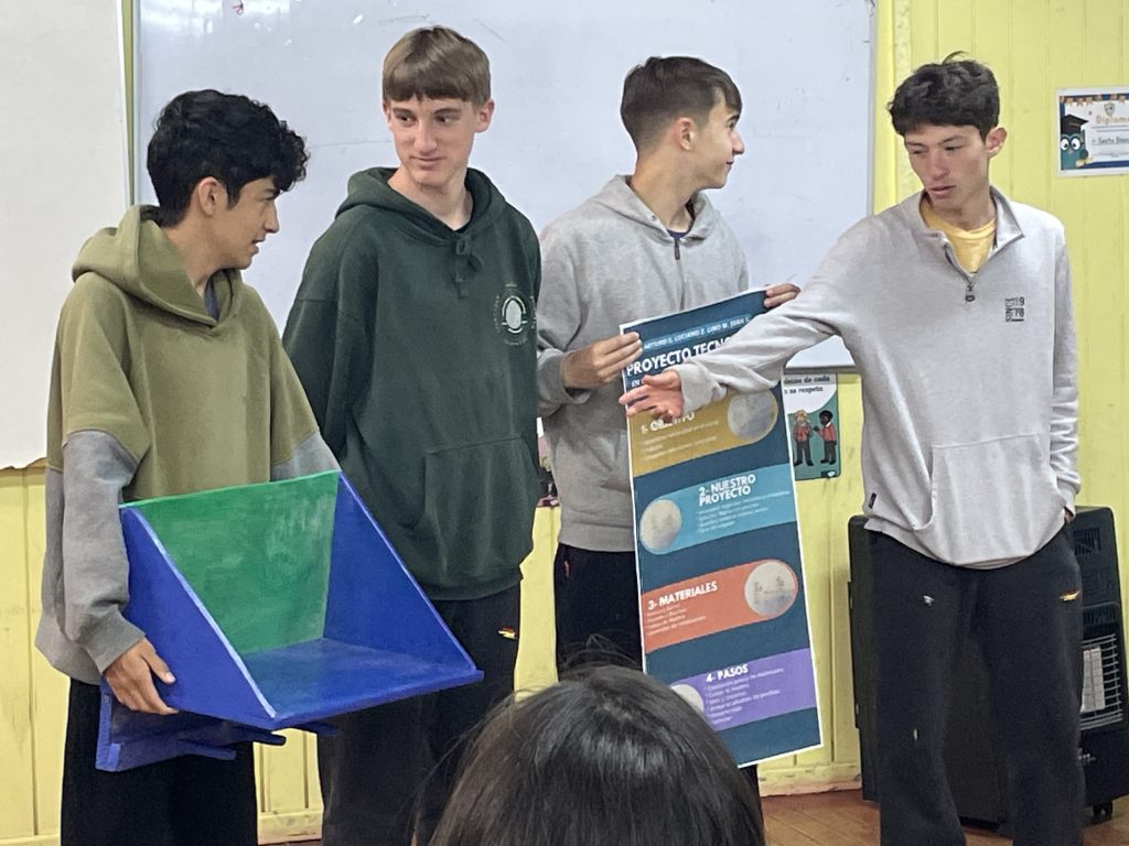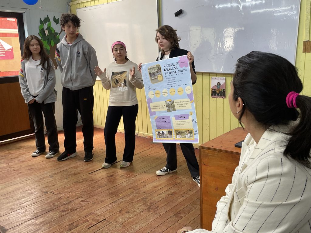 Gleichzeitig arbeiteten einige Gruppen an Lösungen für das Lärmproblem, wie zum Beispiel Fensterabdeckungen aus Polycarbonat, Schaumstoff-Paneele zur Schallabsorption mit interaktiven Informationen über die Regionen Chiles sowie innovative Prototypen wie ein “Lärm Zerstörer” und ein biologisch abbaubares Gel, das als akustischer und thermischer Isolator dient. Auch wenn diese Ideen noch im Prototypenstadium sind, zeigen sie das Engagement unserer Schülerinnen und Schüler, nachhaltige und stufenweise Lösungen für die Bildung zu finden.