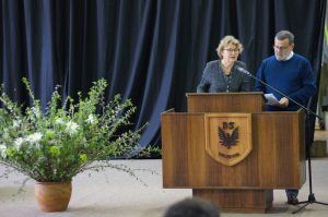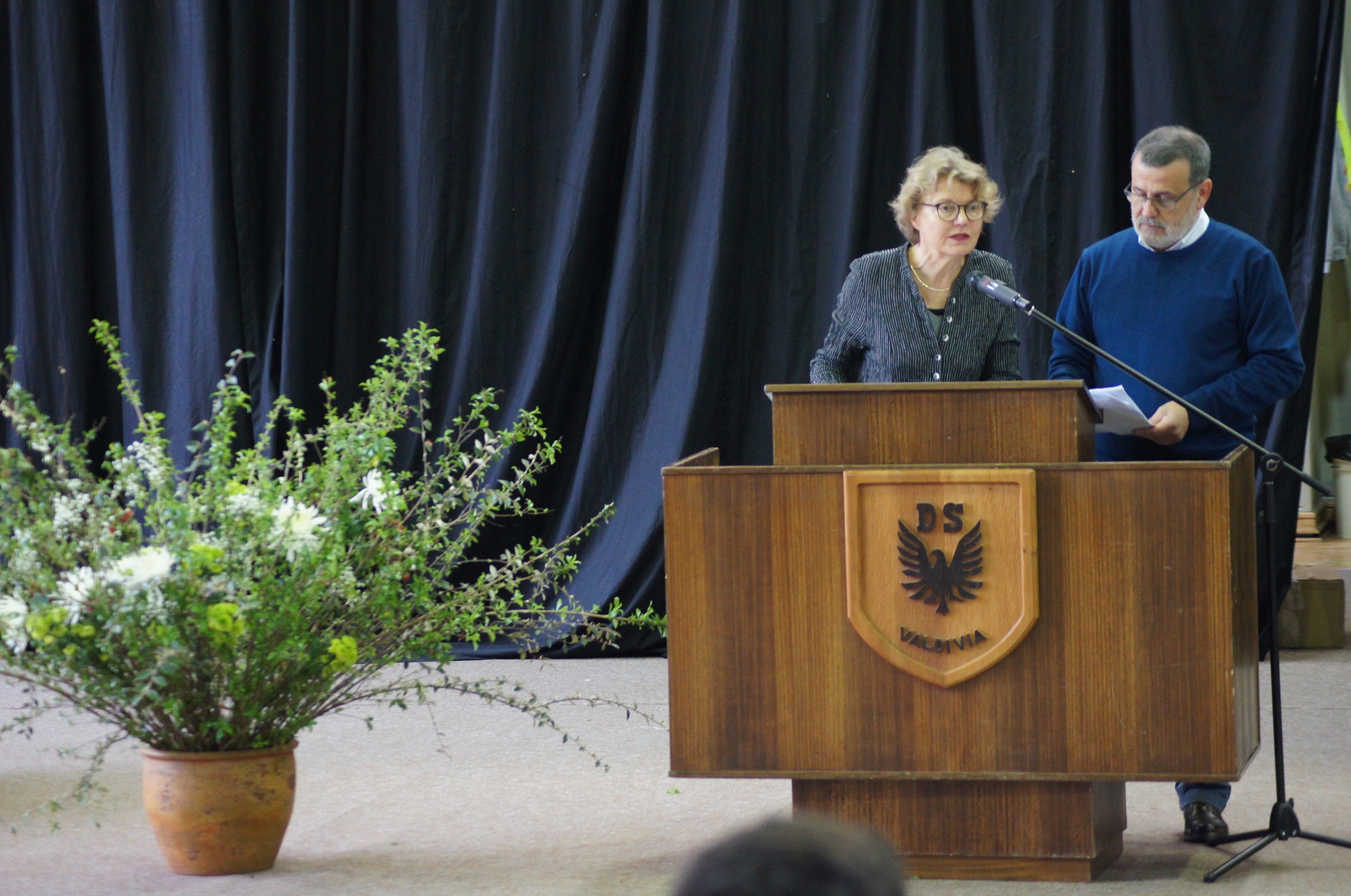 Con la entonación del himno de nuestro Instituto, dirigido por la profesora Renate Hagedorn, comenzó ayer el acto escolar del aniversario 159. A continuación, el profesor Carlos Morilla, maestro de ceremonias, dio la palabra a la Rectora, Liske Salden, quien en compañía del Director de Educación Media, Patricio Ferretti, entregó el saludo a la Comunidad Educativa, poniendo especial énfasis en los actuales desafíos que la vida escolar plantea y en cómo, de manera colaborativa entre los estamentos de la comunidad, se enfrentan.