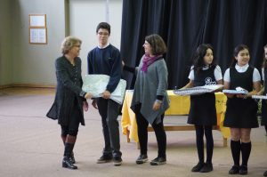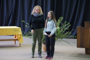 También fue la ocasión de premiar a la ganadora del “Pecha Cucha”, la alumna Francisca Copaja, de I A, quien el 09 y 10 de noviembre representará a nuestro Instituto en la final nacional que se realizará en Santiago en el Colegio Santa Úrsula. “Pecha Kucha” es un formato de presentación libre de un tema realizado en PPT, en el que se presentan 15 transparencias, que aparecen por 20 segundos, como explicó la Jefe del Departamento de Alemán, profesora Silke Heckele, quien hizo entrega del premio a la ganadora.