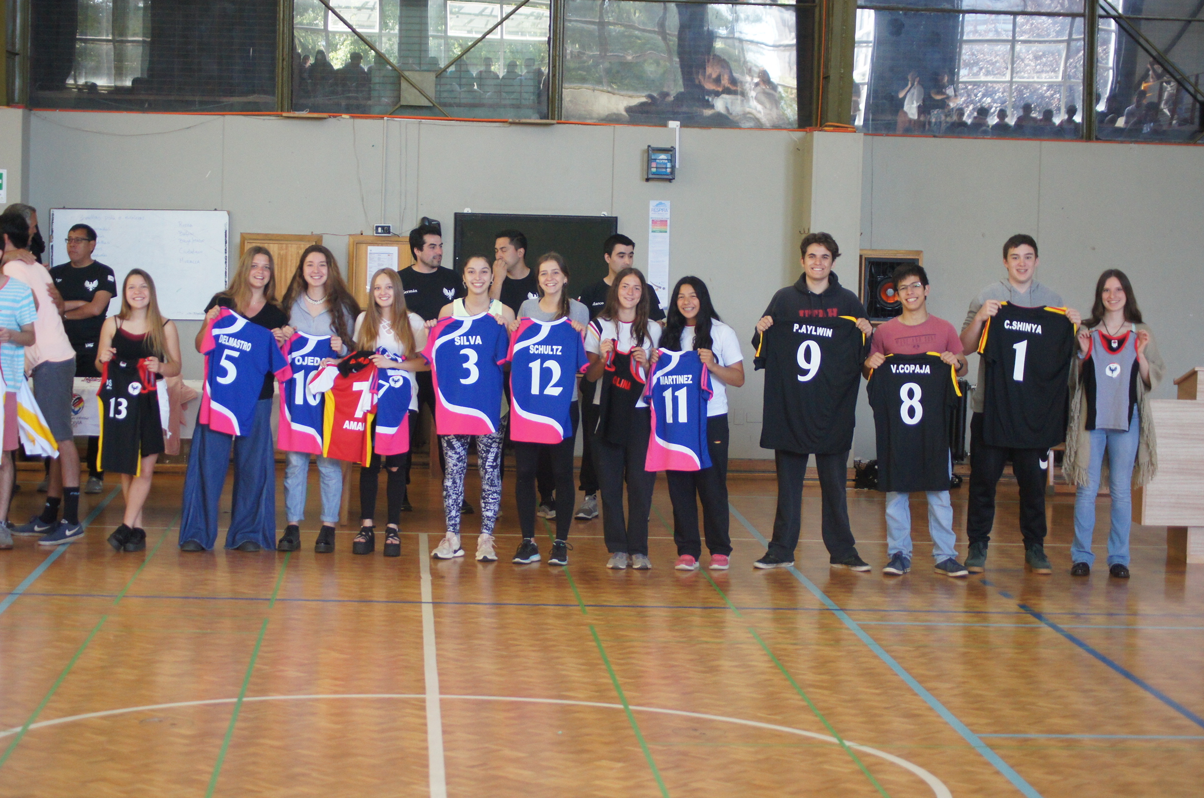 A continuación, el Departamento de Educación Física despidió a los alumnos egresados de IV medio que durante años contribuyeron a distintas disciplinas deportivas con su entusiasmo, constancia y esfuerzo. Recibieron como recuerdo una camiseta de los deportes que practicaron, los ya exalumnos: Carolina Hövelmeyer, Paloma Berbelagua, Amalia Taboada, Petra Bachmann, Christian Burdach, Vicente Estévez, Florencia Tobar, Amela Bifani, Consuelo Yáñez, Cristian Fuentes, Luciano Villarroel, Javier González, Ariki Ruiz, Francisca Silva, Florenzia Ojeda, Florencia Schultz, Rosario Delmastro, Paula Martínez, Christian Shinya, Pablo Aylwin, Vicente Copaja, Valeria Arias y Camila Aubel.