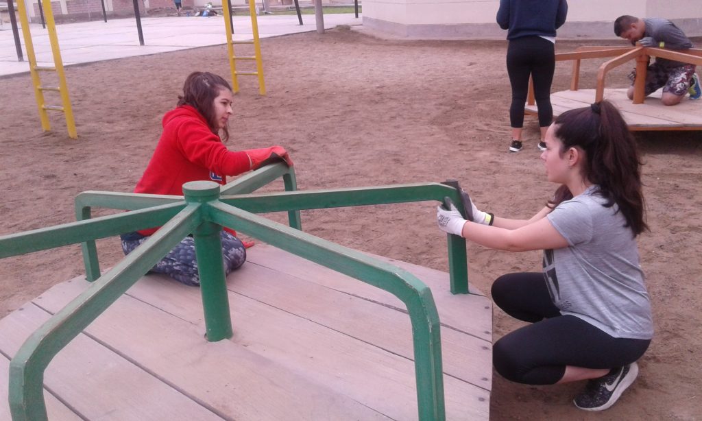 Durante los días del encuentro, Emilia participó en proyectos de mejoramiento de una escuela estatal, en la que, divididos en grupo, los 160 asistentes se dedicaron a mejorar y embellecer el entorno. Emilia trabajó específicamente en la plaza de juegos del jardín infantil y también compartió actividades con los niños.