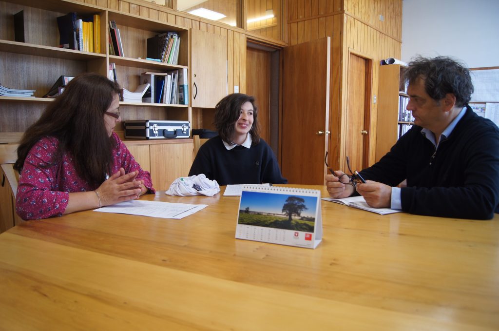 Esta mañana, junto a la profesora Ingrid Provoste, fue recibida por el Rector Bock para relatarle su experiencia, sobre todo porque es la primera vez que un estudiante de nuestro Instituto asiste a este encuentro. El Rector se mostró muy motivado por el relato de Emilia y conversó con ella largo rato.