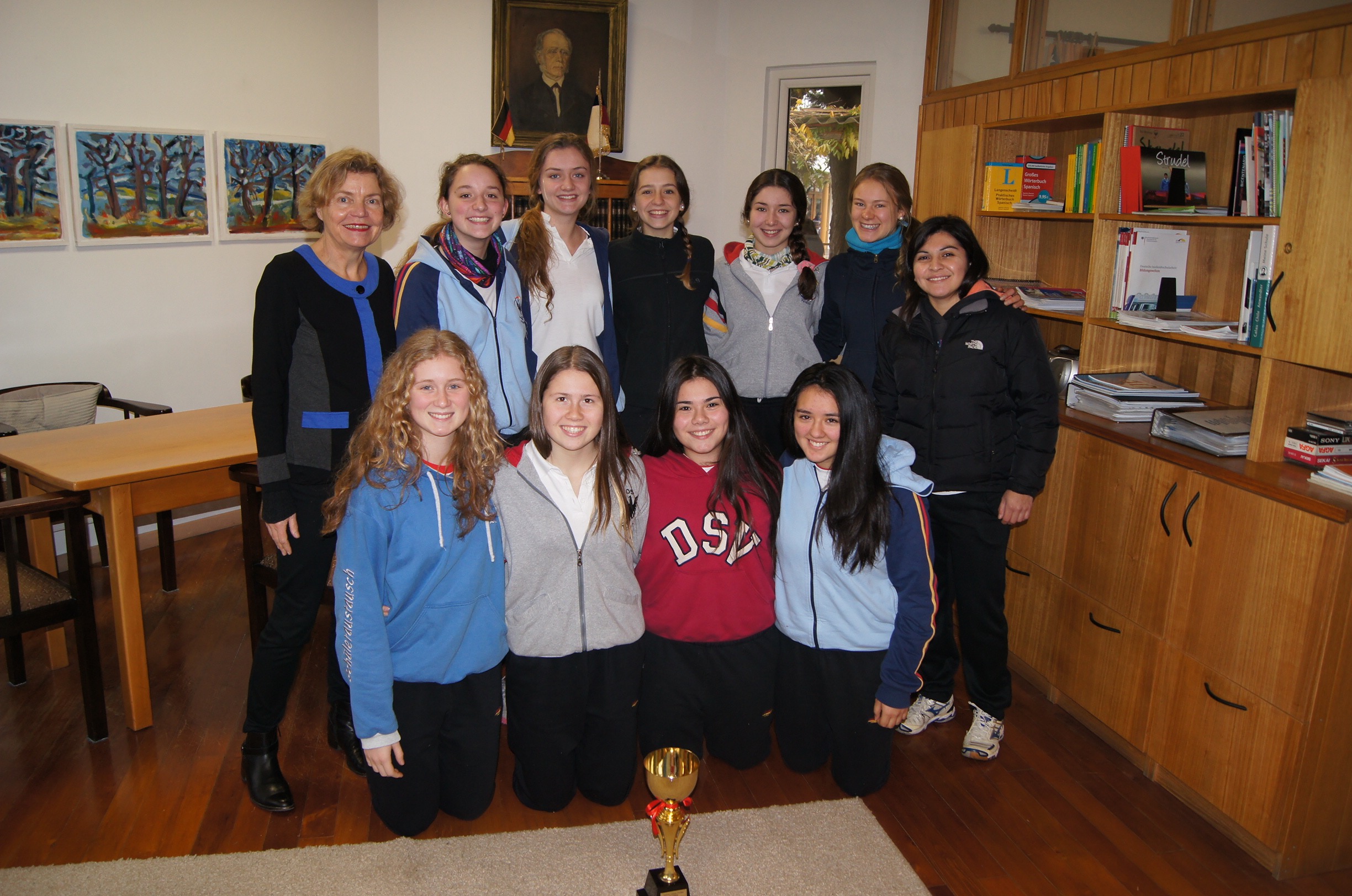 La Directora conversó con ellas y les preguntó algunos datos del campeonato, para luego felicitarlas por su compromiso representando al colegio en esta disciplina deportiva y regalarles un chocolate para el recreo.