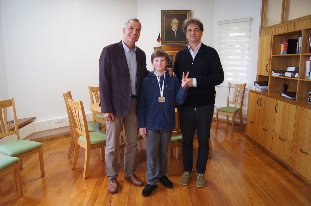 Esta mañana, en el primer recreo, nuestro alumno del 6.2 Rafael Labatut Rademacher fue recibido por el Rector Marc-Thomas Bock, en compañía del Director de Segundo Ciclo Básico Marcelo Rojas, para felicitarlo en Rectoría por su último logro en natación.