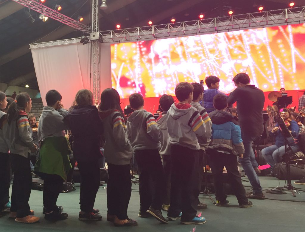 Nuestros alumnos de los 4º básicos asistieron a la presentación acompañados de sus profesores, en la que más de 85 músicos interpretaron a estos compositores de la música docta.