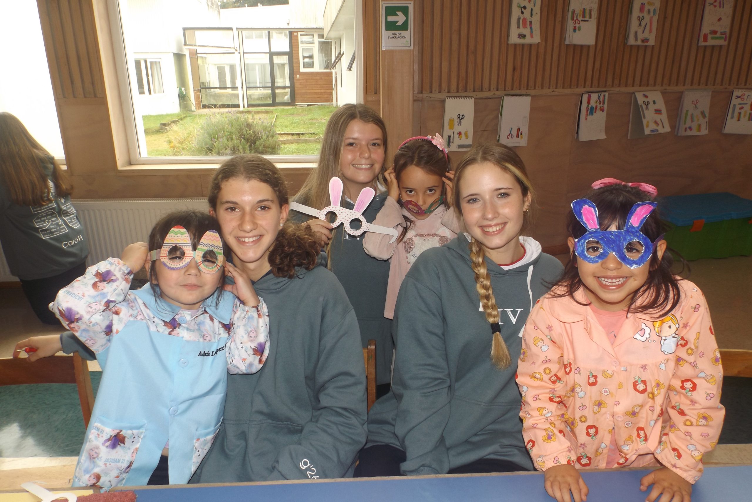 Durante la jornada, los estudiantes mayores compartieron con los niños del Preescolar en una experiencia de encuentro y trabajo conjunto, en la que pintaron anteojos con forma de huevitos de pascua y orejitas de conejo. La actividad permitió acercar a ambos niveles en un ambiente de alegría, colaboración y preparación para esta celebración.