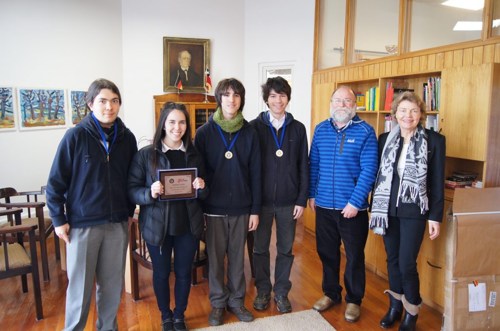 Nuestra Rectora, Liske Salden, los recibió esta mañana, junto al profesor Jaime Garcés, Jefe del Departamento de Matemáticas de nuestro Instituto. La Rectora conversó con los estudiantes y los instó a seguir participando en los siguientes torneos matemáticos, además de felicitarlos y regalarles una saludable golosina para el recreo.