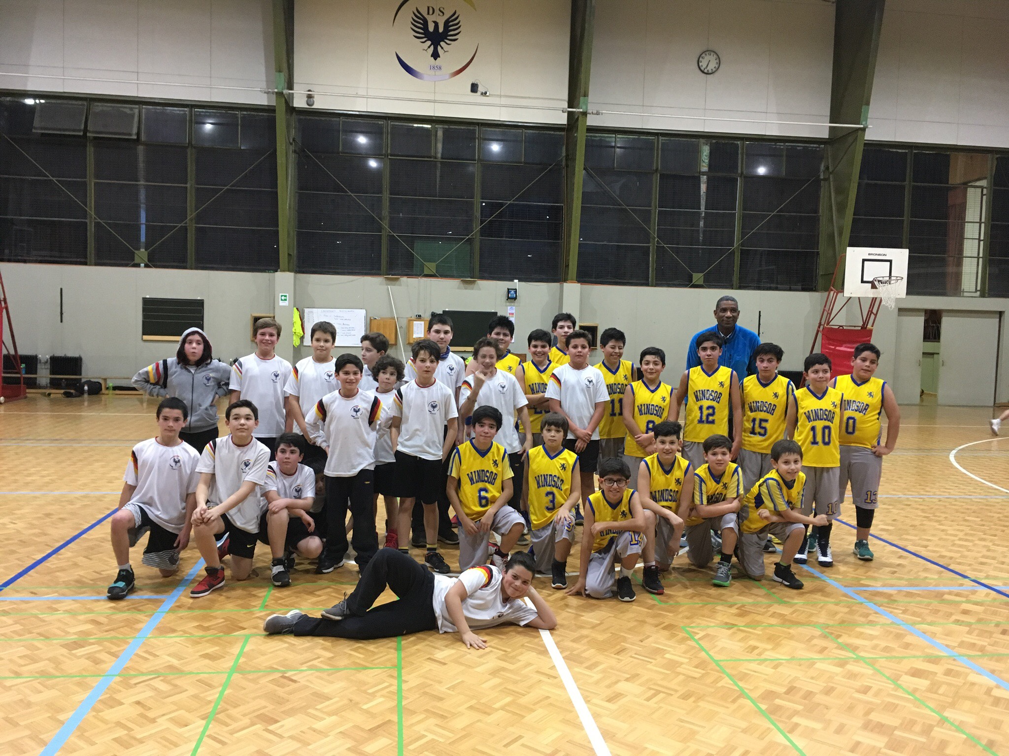 Ayer por la tarde se realizó un encuentro de Básquetbol con el equipo de 5º y 6º básico del Windsor School, que se encuentra bajo la guía del profesor Keith Hood. El evento deportivo comenzó con juego en cancha reducida, con el gimnasio dividido en dos, para finalizar con partido a cancha completa.