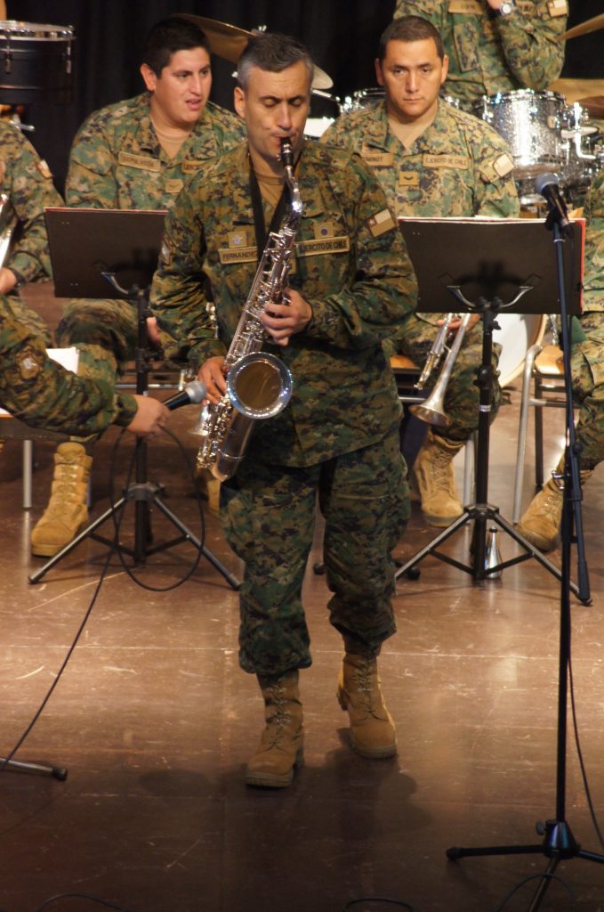 Zu Beginn wurde jedes Instrument vom Unteroffizier Fernando Gonzáles einzeln vorgestellt, wie Blasinstrumente aus Holz und Bronze, Perkussionsinstrumente und ein Elektrobass.