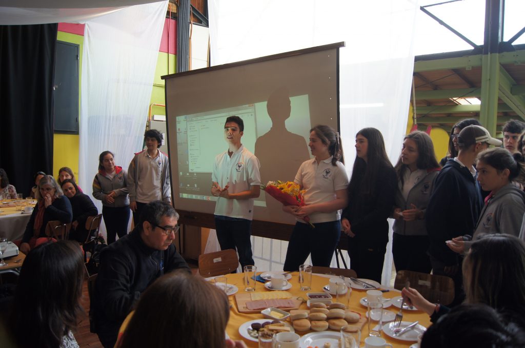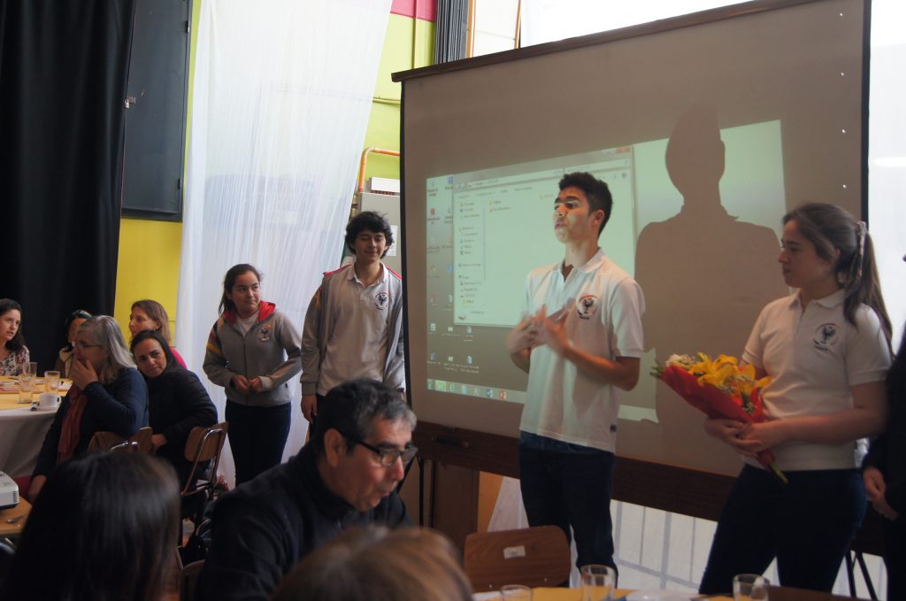 A continuación, mostraron un video realizado por sus compañeros, con mensajes grabados para los docentes y saludos de cursos y alumnos, y entregaron un ramo de flores a la profesora Constanza Rojos, su asesora.