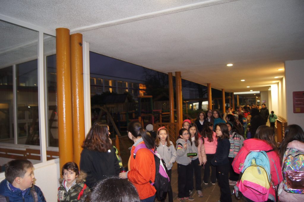 A partir de las 07:25 hrs., los alumnos que trajeron sus tazones con tapa pudieron disfrutar de leche con chocolate caliente (sin sellos), iniciativa de la directiva del Centro de Alumnos, para despedir el semestre de una cálida manera.