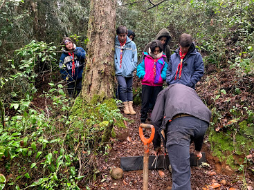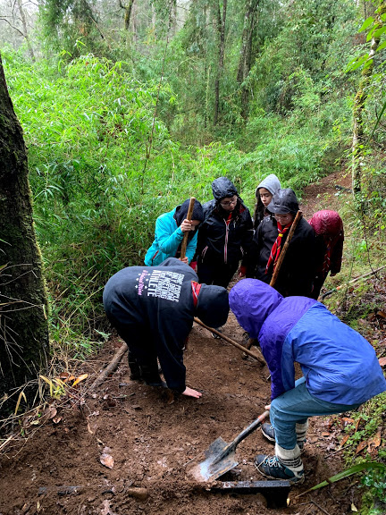 No sólo fue disfrutar del entorno, sino también las unidades de Tropa Compañía, Avanzada y Clan realizaron actividades de servicio, específicamente apoyando en la construcción de escaleras de los senderos ubicados en el terreno de la escuadra, y así pudieron conocer a través de un monitor del lugar el impacto de la labor agroecológica en el medio ambiente, y cómo cada uno puede aportar con distintas acciones.