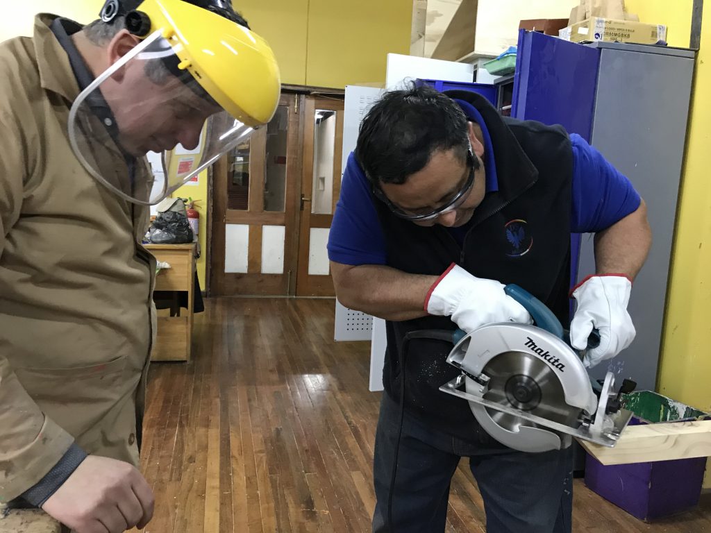 Las actividades comenzaron con la realización de un diagnóstico a las herramientas y maquinarias disponibles en el taller. Se utilizaron en el transcurso de las clases lijadoras, taladros, sierra circular fija y móvil, cepillo eléctrico, torno, caladoras, entre otras, para la certificación de manipulación segura, además de aprender a realizar la mantención de ellas.