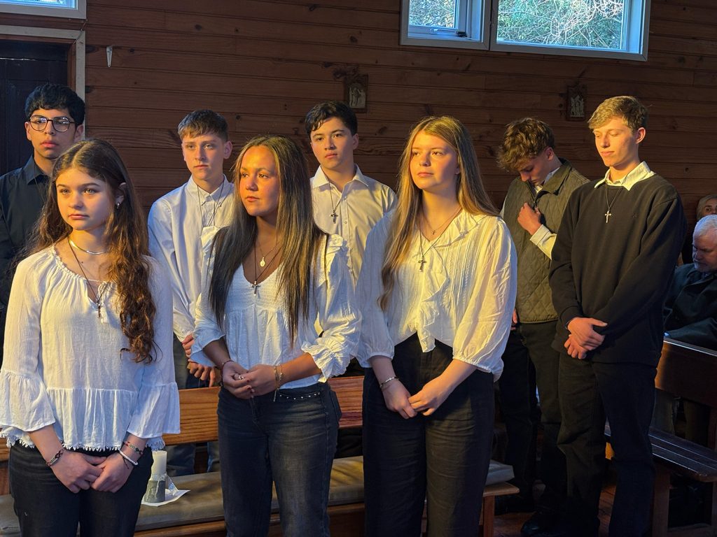 El Profesor Godoy felicitó a los alumnos que recibieron el sacramento: Agustín Aylwin, Juan Diego Stolzenbach, Joaquín Isla, Benjamín Leppe, Javiera Campos, Catalina Stolzenbach, Magdalena Wittwer, Matilde Cox, Rocío Massardo, Fernanda Epprecht, Agustín Montaner, José Pedro Westendarp y Santiago Nannig.