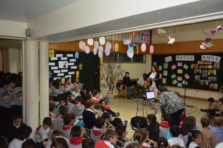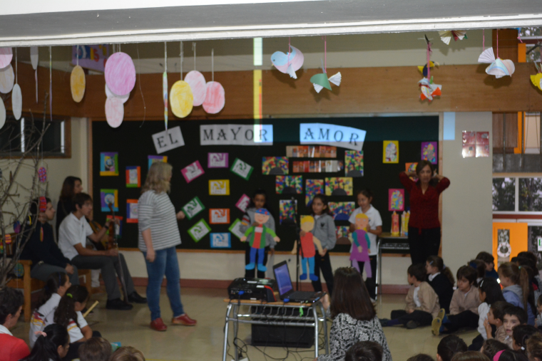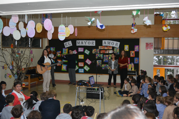 06.04.2015 Durante la primera hora, los alumnos de 1º a 4º básico asistieron a un pequeño acto en el forum de la Básica.