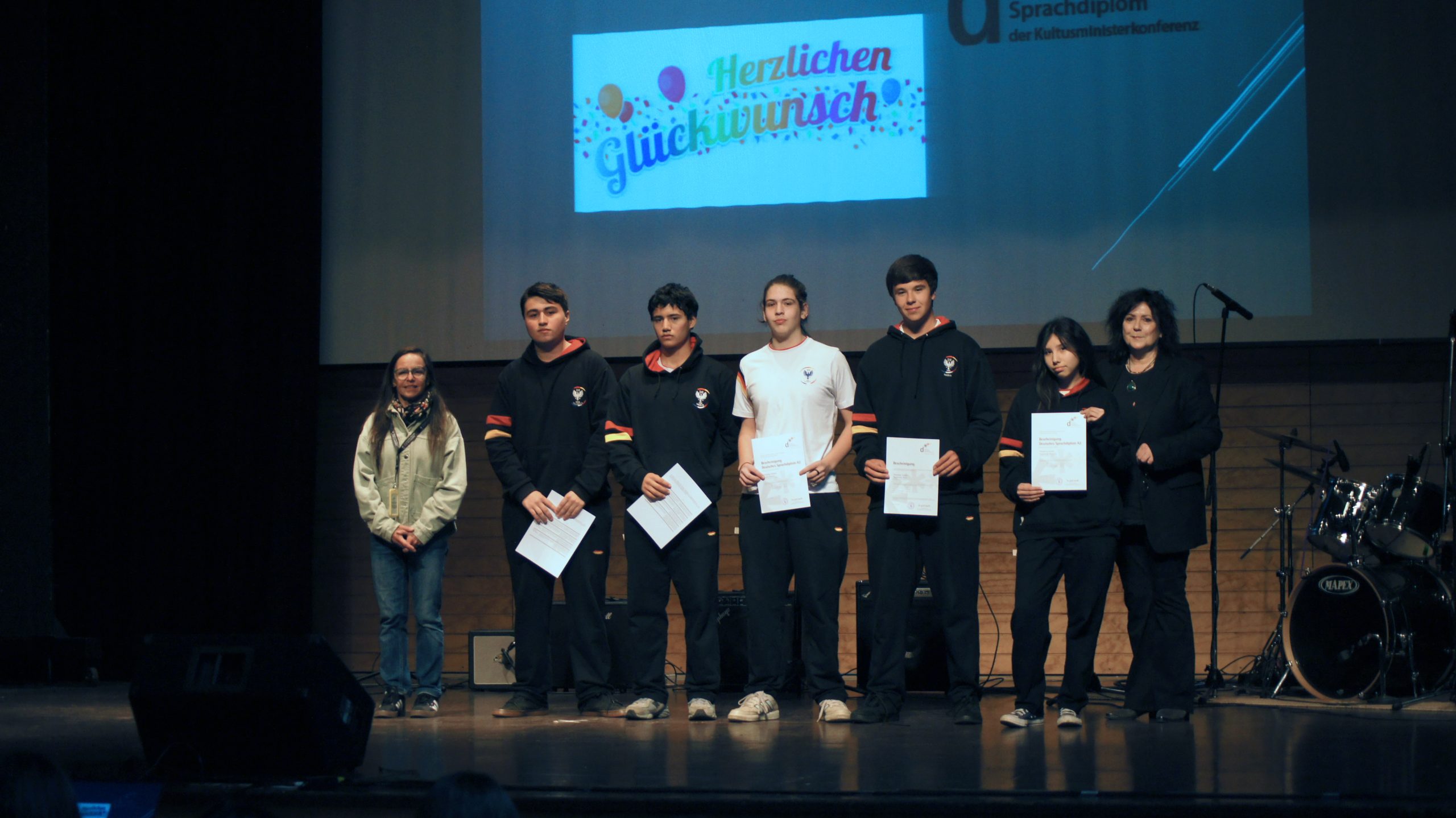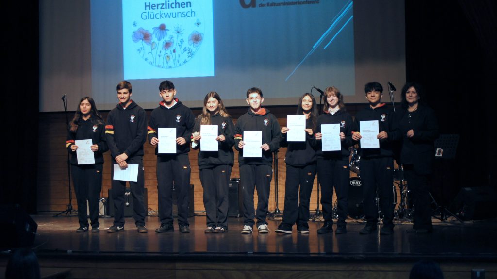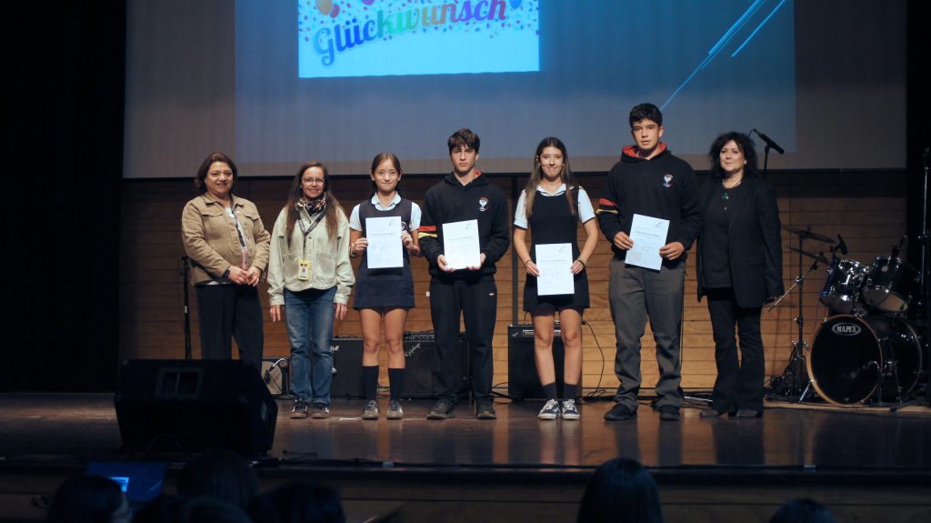 La actividad se inició con las palabras de bienvenida de la Jefe del Departamento de Alemán Susanne Braun y el saludo del Rector, Markus Biber. Posteriormente, se desarrolló la entrega de certificados en distintas etapas, a cargo de la profesora Braun y de las docentes Liliana Cárcamo e Ingrid Provoste, lo que permitió dar un marco ordenado y significativo a este importante reconocimiento académico.