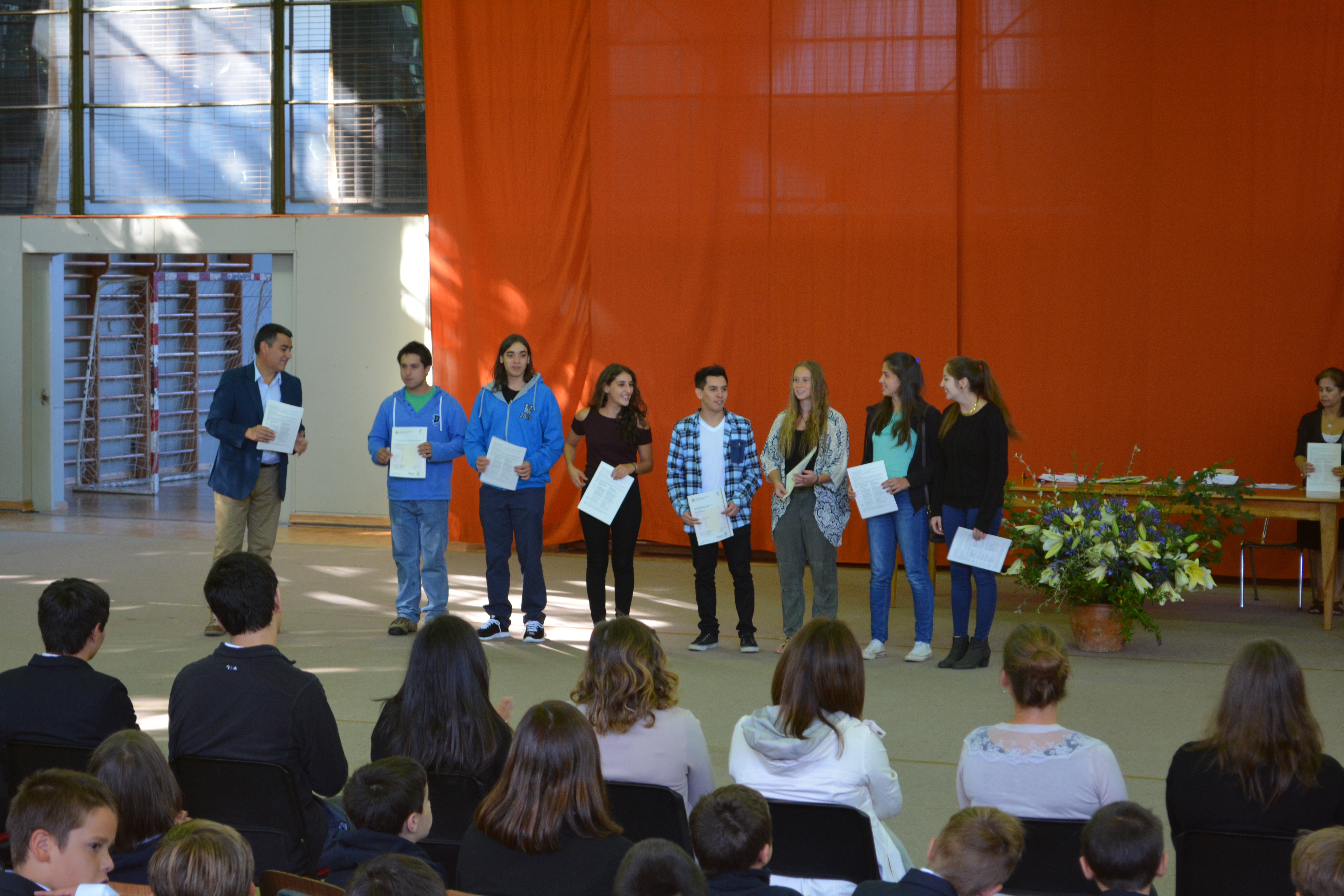 El Jefe del Departamento de Inglés, profesor Cristian Cárdenas, hizo entrega de los diplomas de los exámenes First Certificate in English y Certificate in Advanced English (CAE) a los alumnos de IV medio 2015 que se encontraban presentes en el acto inaugural. En los exámenes internacionales de la Universidad de Cambridge, 27 alumnos de IV medio 2015 rindieron los exámenes B2 y C1 en Inglés. Del total de alumnos, 12 obtuvieron en nivel B2 y 14 obtuvieron el nivel C1. Esto equivale a un 96% de aprobación, el mejor resultado logrado en ocho años, desde que nuestros estudiantes participan en estas pruebas internacionales.