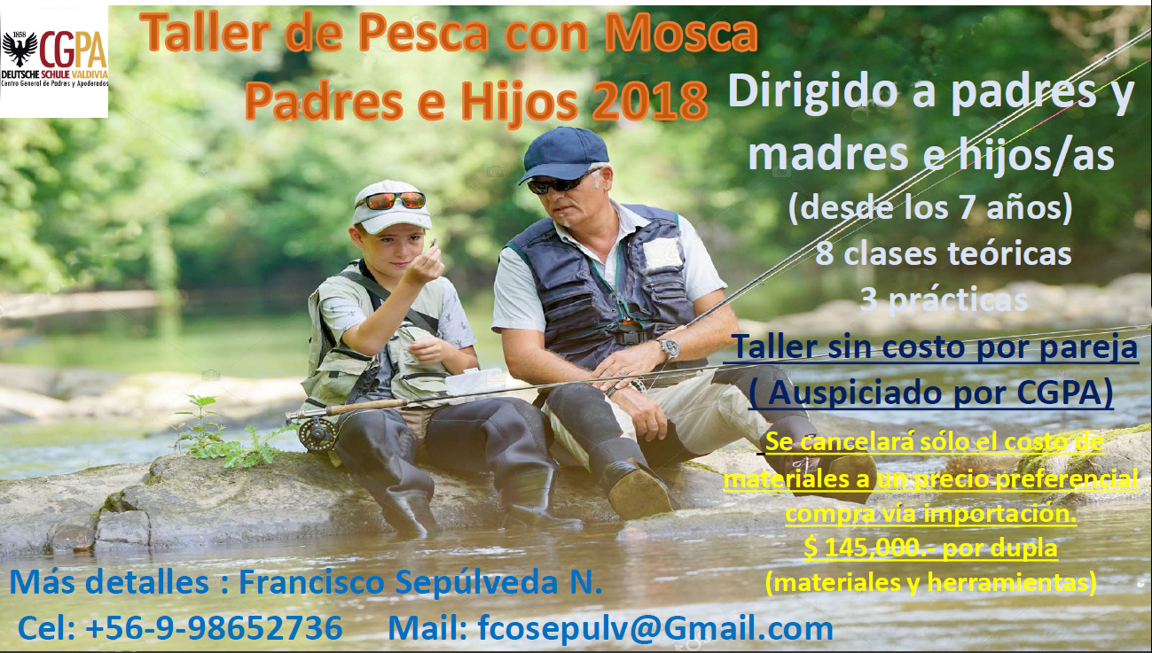La Comisión Deportes del Centro General de Padres y Apoderados invita a papás, mamás e hijos a participar del Taller de Pesca con mosca, que ofrece el apoderado Francisco Sepúlveda.