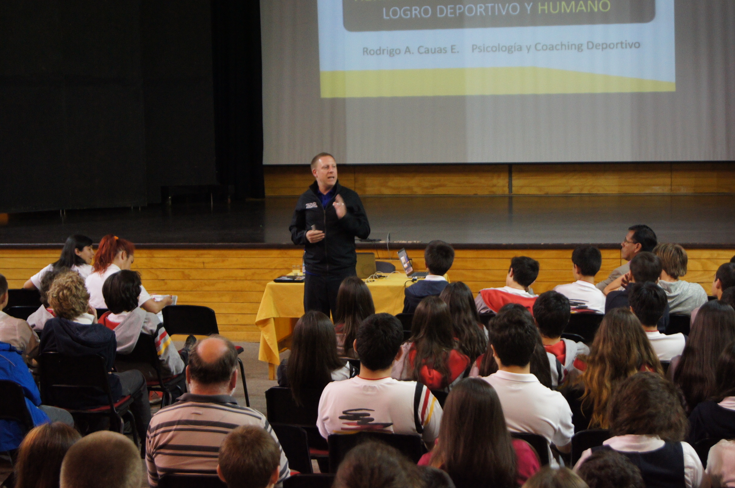 07.12.2015 Nuestros alumnos de 7º básico a III medio asistieron el viernes a la exposición “Herramientas psicológicas para el logro deportivo y humano”.