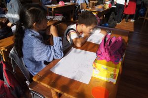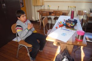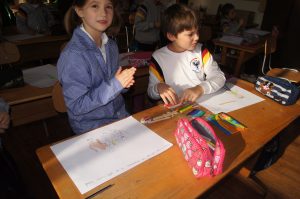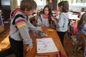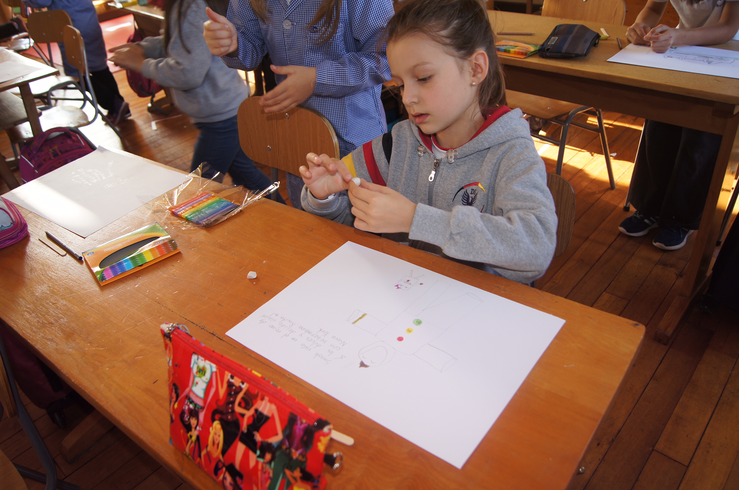 La ilustradora les enseñó a construir una breve historia con personajes; luego los alumnos dibujaron una escena de sus relatos para luego comenzar a rellenar las figuras con plasticina. En ilustración se crean figuras con volumen, las que luego se fotografían; si se realizan varios fotogramas por escena, se puede llegar a la animación con la técnica de stop motion.