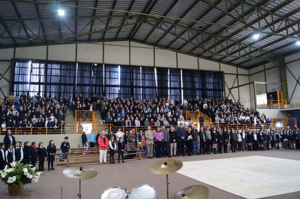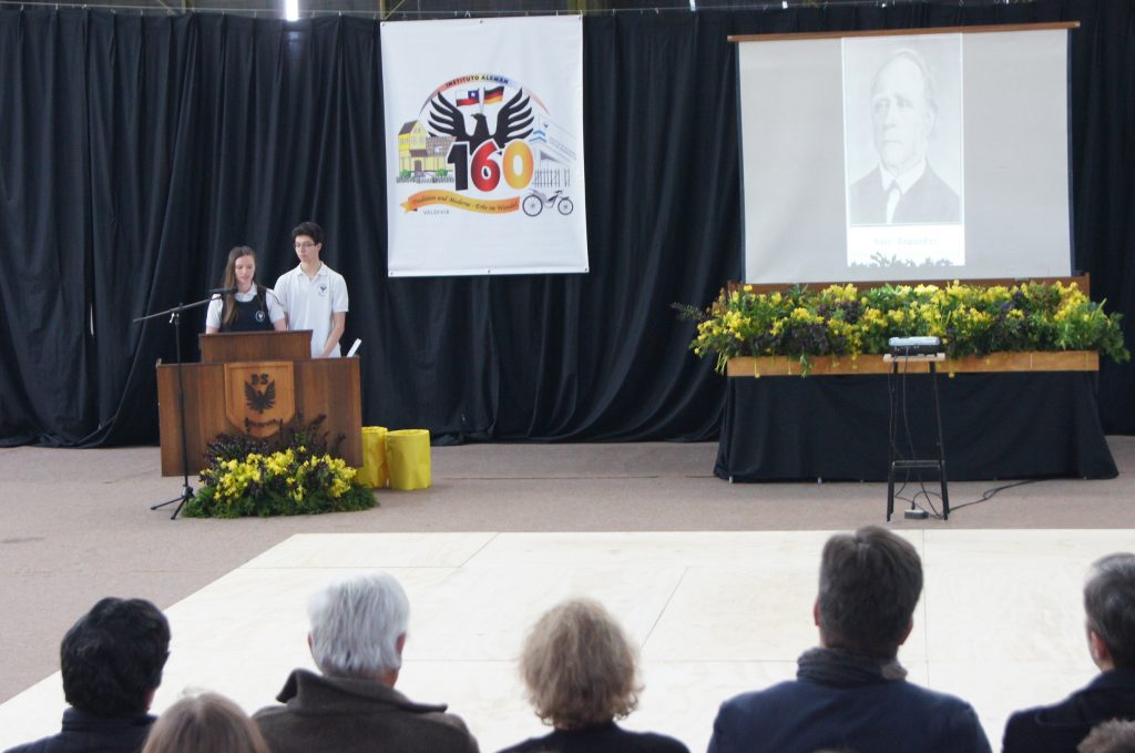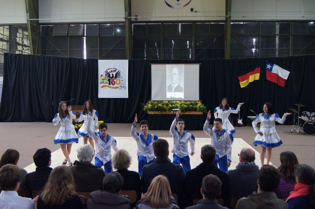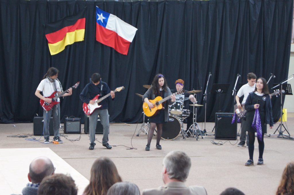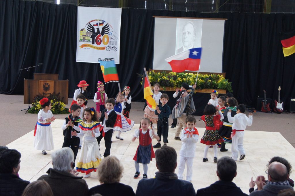 El inicio se dio con la interpretación de los himnos de Chile y Alemania, a cargo de la Orquesta Juvenil del Instituto, y coreados por todos los presentes, dirigidos por el profesor Jaime Pino. A continuación, los pequeños de Kindergarten hicieron un regalo a sus compañeros mayores con una colorida coreografía de “Todos juntos” de Los Jaibas, apuntando a la unidad de los pueblos. Nuestra Rectora, Liske Salden, en sus breves palabras enfatizó la biculturalidad de nuestro Instituto, el acento en el alemán, no sólo como idioma, sino como transmisor de una cultura diferente que se ha unido a la chilena para hacer de nuestro Instituto el colegio que actualmente es.