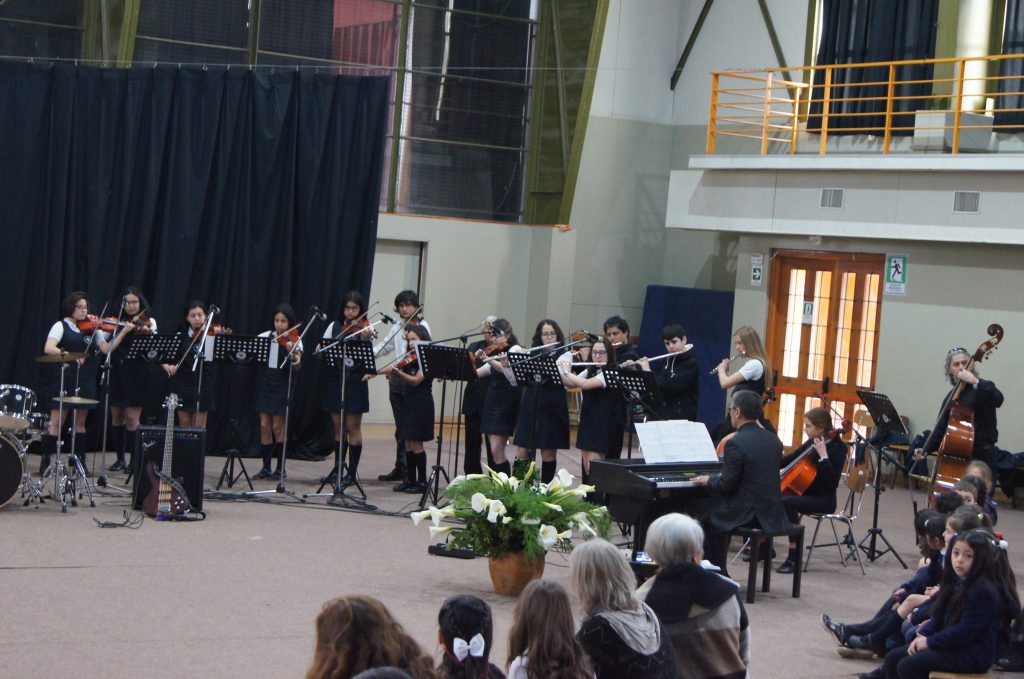 Siguieron a este discurso otras presentaciones artísticas: el III C, ganador del concurso realizado por las celebraciones de septiembre, mostró una cueca brava y un caporal; nuestra Orquesta Juvenil interpretó “Rivers flow in you” de Yiruma, y la banda rock tocó también un tema para cerrar; no sin antes dar paso a los estudiantes Petra Bachmann y Lucas González, presidente y relacionador público del Centro de Alumnos, quienes saludaron a todos los integrantes de la Comunidad Educativa y agradecieron por los espacios de convivencia y celebración durante esta semana.