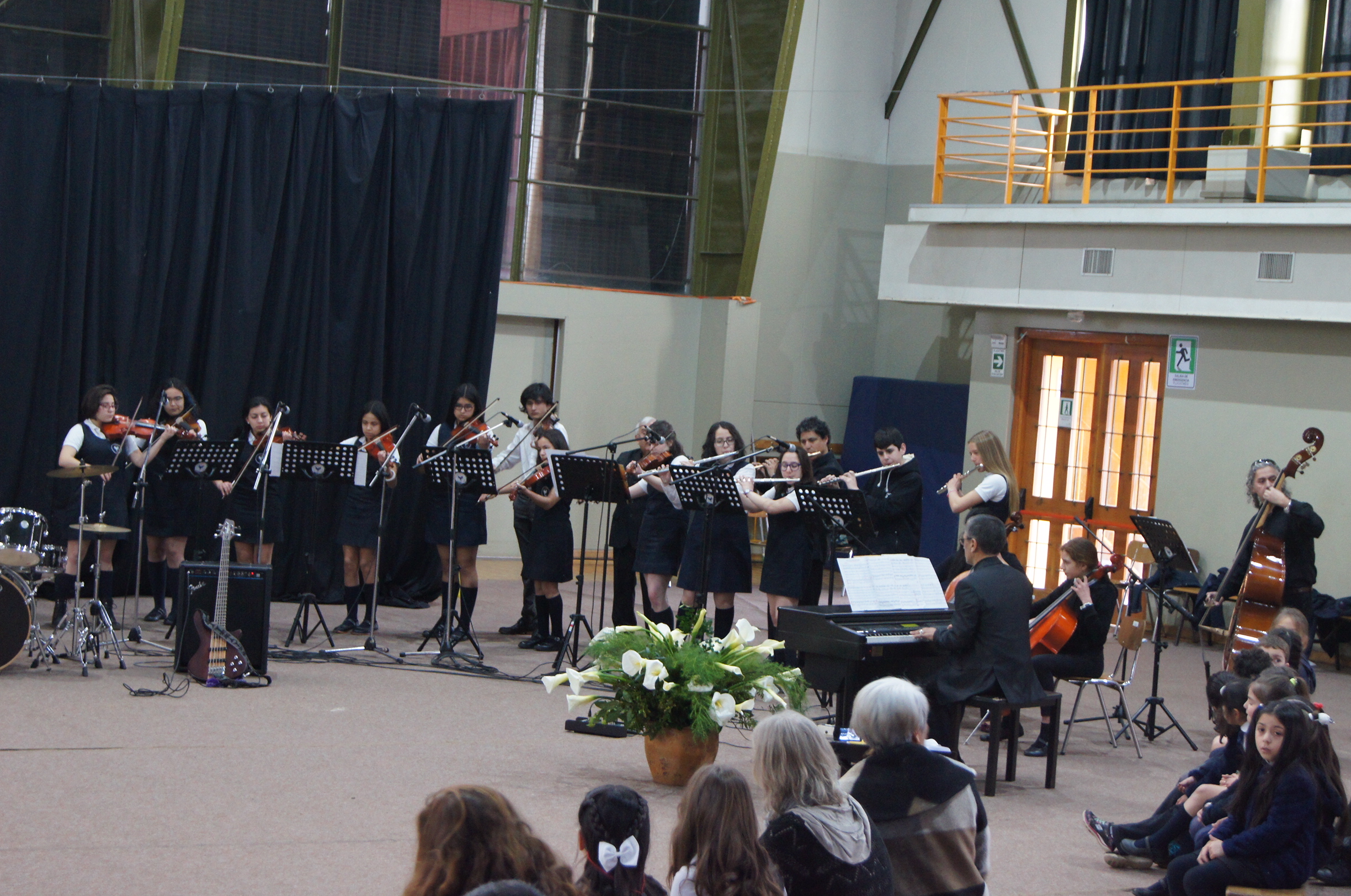 Siguieron a este discurso otras presentaciones artísticas: el III C, ganador del concurso realizado por las celebraciones de septiembre, mostró una cueca brava y un caporal; nuestra Orquesta Juvenil interpretó “Rivers flow in you” de Yiruma, y la banda rock tocó también un tema para cerrar; no sin antes dar paso a los estudiantes Petra Bachmann y Lucas González, presidente y relacionador público del Centro de Alumnos, quienes saludaron a todos los integrantes de la Comunidad Educativa y agradecieron por los espacios de convivencia y celebración durante esta semana.