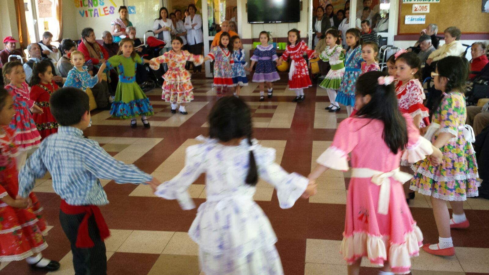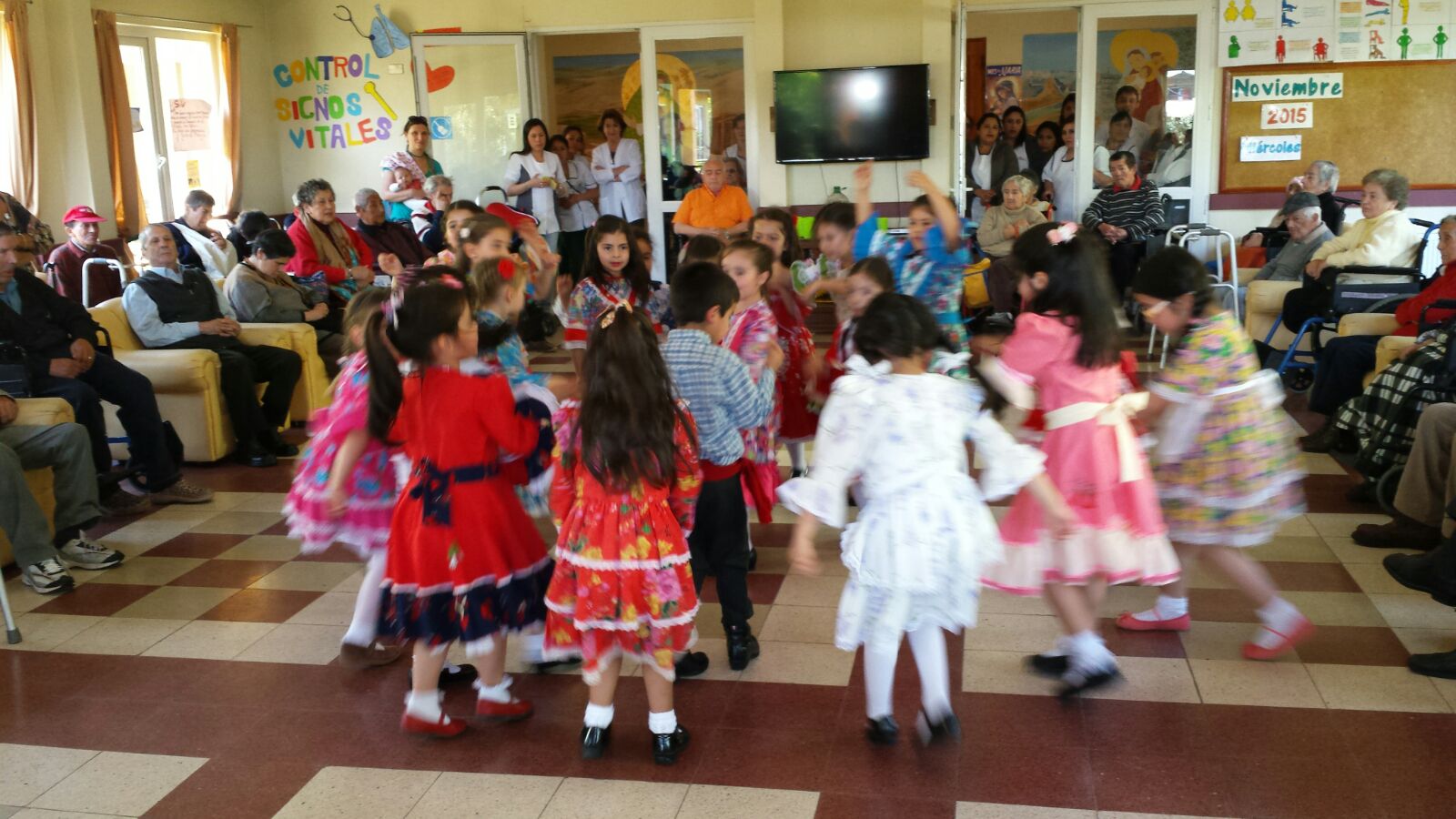 Para ello, pidieron el apoyo del Grupo de Folklore de Kindergarten, a cargo de las educadoras Carolina Sánchez y Anita Muñoz, que el miércoles pasado a partir de las 15:00 hrs. cantó y bailó para los ancianos, quienes se mostraron muy contentos con la actividad.
