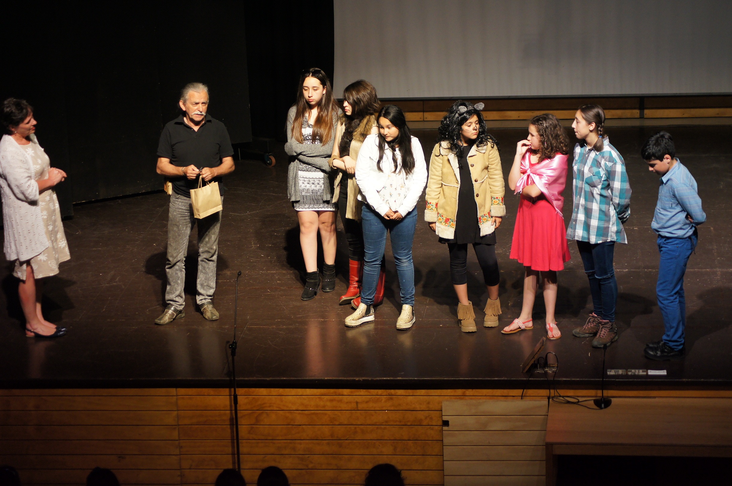 El grupo de Teatro integrado por alumnos de 5º básico presentó anoche la obra “Emociones” de creación colectiva, es decir, desarrollada en las clases por los mismos alumnos. Con gran gracia y mucha sensibilidad, las alumnas fueron contando lo que sucede en la vida de una adolescente al enfrentarse a las distintas emociones, representadas por las actrices. Al finalizar la presentación, las estudiantes despidieron a su profesor Bruno Wersikowsky con emocionadas palabras, agradeciéndole el buen humor, la paciencia y todo el aprendizaje de este año.