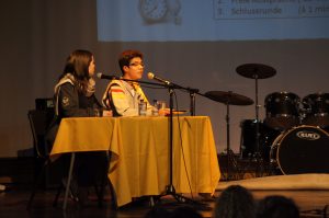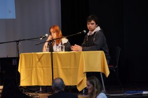 Los alumnos Sofía Barrera, de III A, y Felipe Davis, de III C, fueron los ganadores del Concurso de Debate, “Jugend debattiert”, organizado por el Departamento de Alemán, para escoger a los representantes que competirán en la final nacional, que en cada país se realizará entre junio y septiembre, de la que se elige a cuatro ganadores para participar en el torneo sudamericano que este año se llevará a cabo a fines de octubre en Brasilia, Brasil.