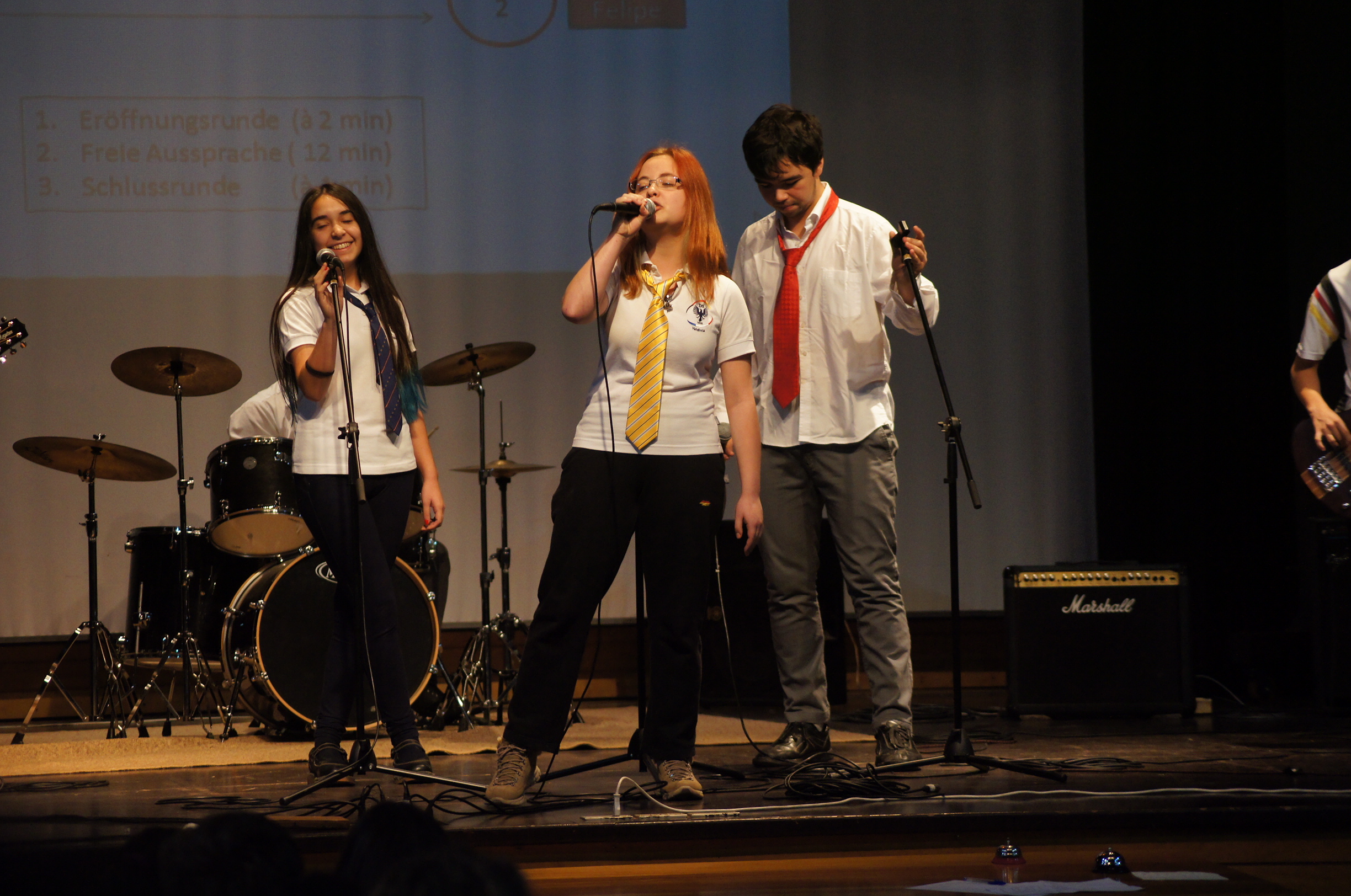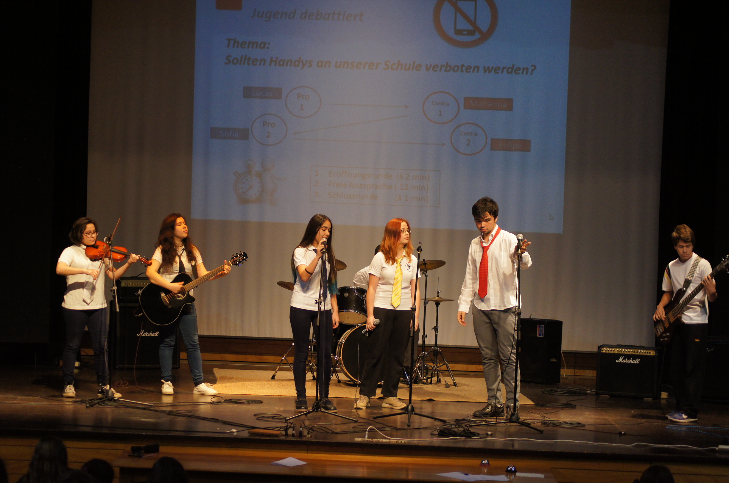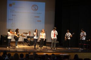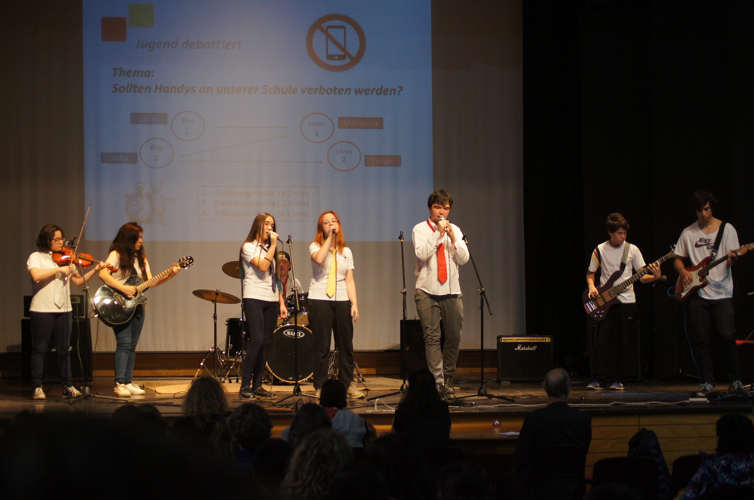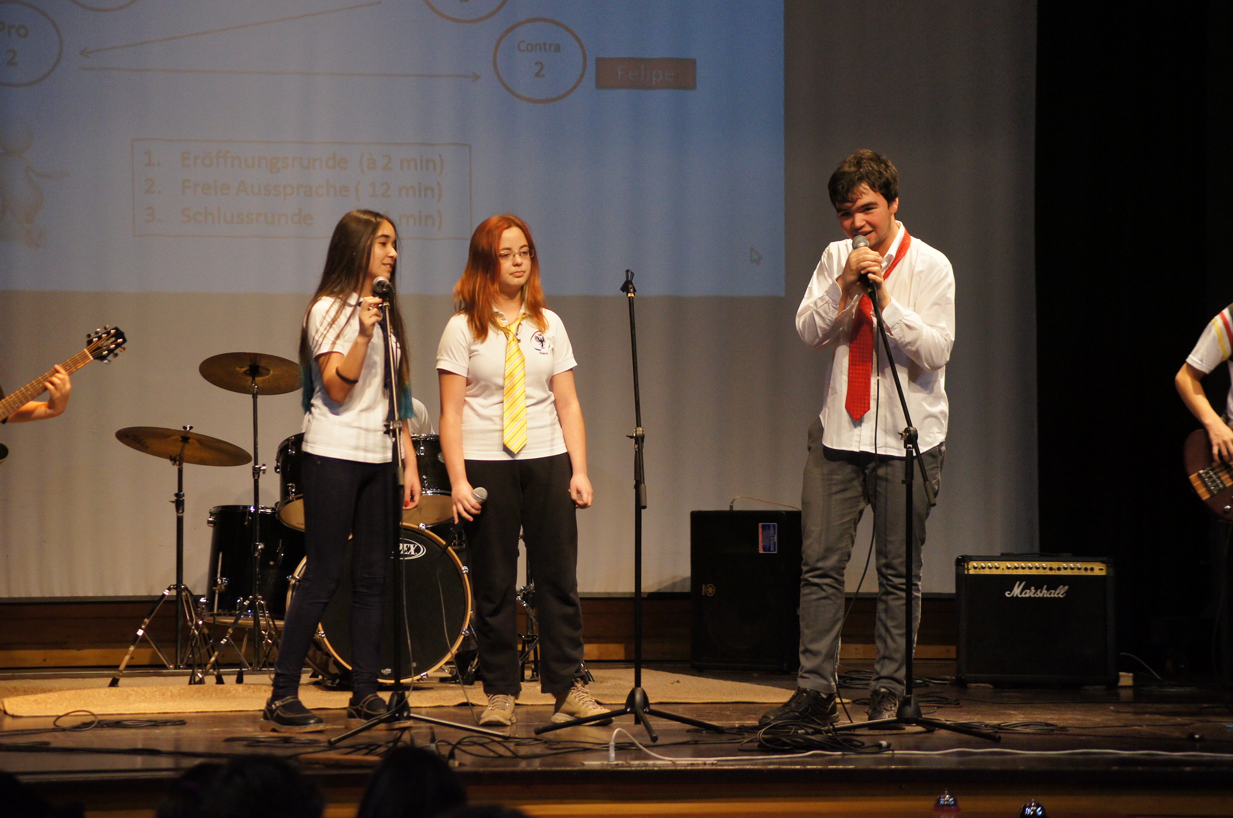 Una vez finalizado el debate, el jurado se retiró a dirimir, mientras la banda rock del colegio interpretó dos temas, logrando el aplauso de sus compañeros, que asistieron a presenciar la competencia.