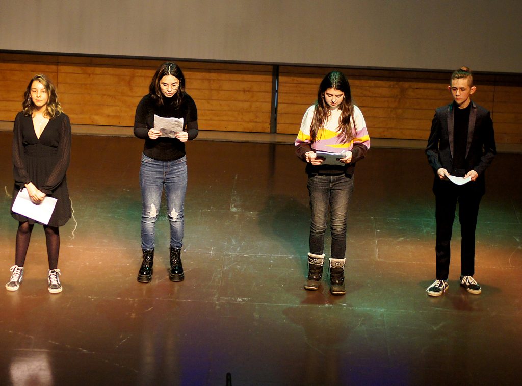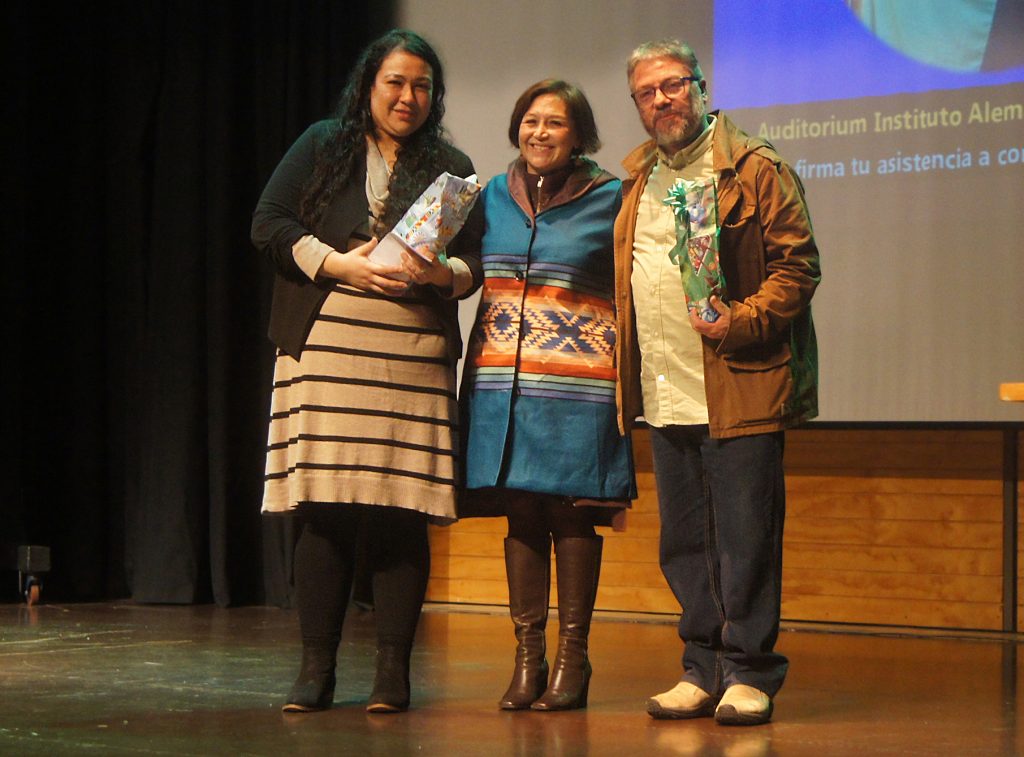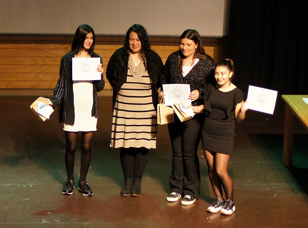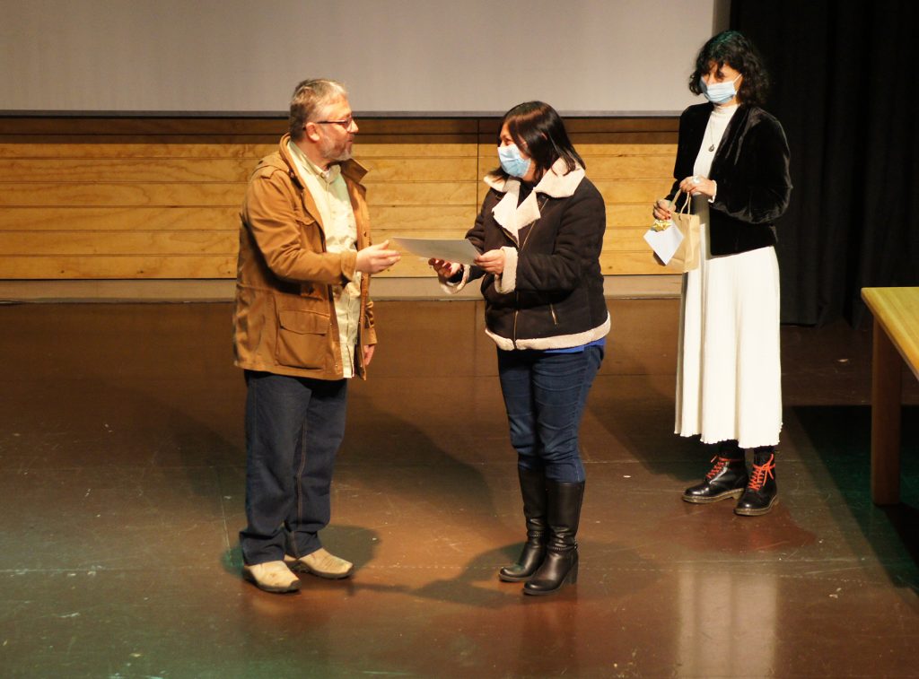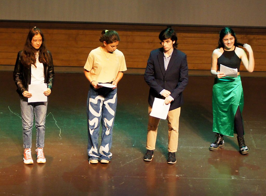 Luego de la intervención del profesor Tóliç, se procedió a la premiación del tercer lugar en la categoría de 7º y 8º básico, logrado por las alumnas de nuestro Instituto Laura Boettcher, Antonia Hinrichs y Julieta Ruminot, quienes crearon “Noche loca”. La obra fue presentada con la modalidad de lectura dramatizada, como parte del premio por el tercer lugar.