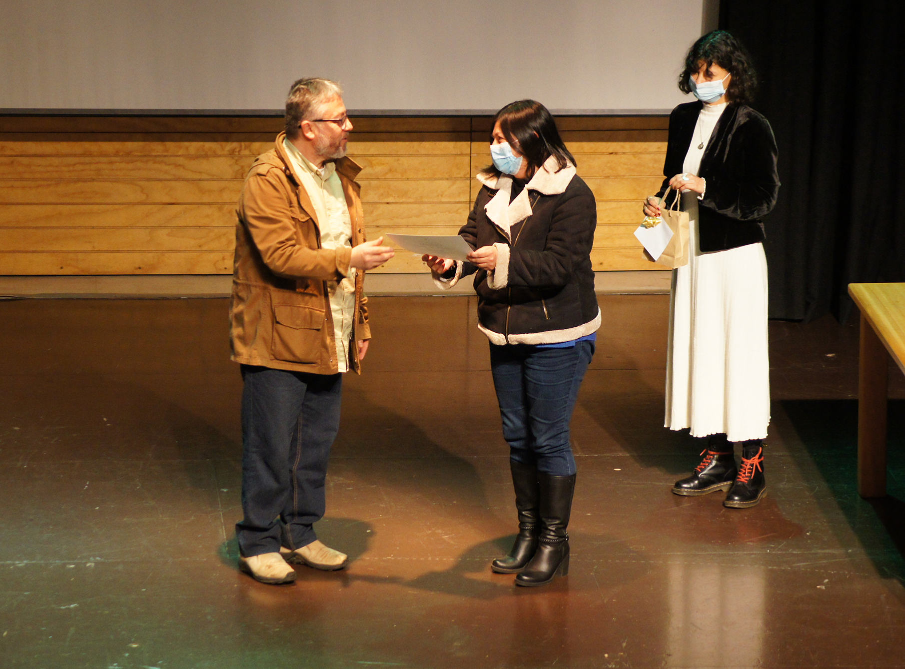Ruth Marina Belmar cerró la ceremonia de premiación con palabras de elogio y encomio para que los estudiantes continúen en sus procesos de creación y producción de textos dramáticos, luego de lo cual se le entregó un recuerdo como agradecimiento a su participación en el jurado, así como al profesor Tóliç y se hará llegar a Luis Ariel Guzmán el suyo, ya que no asistió por motivos de salud.