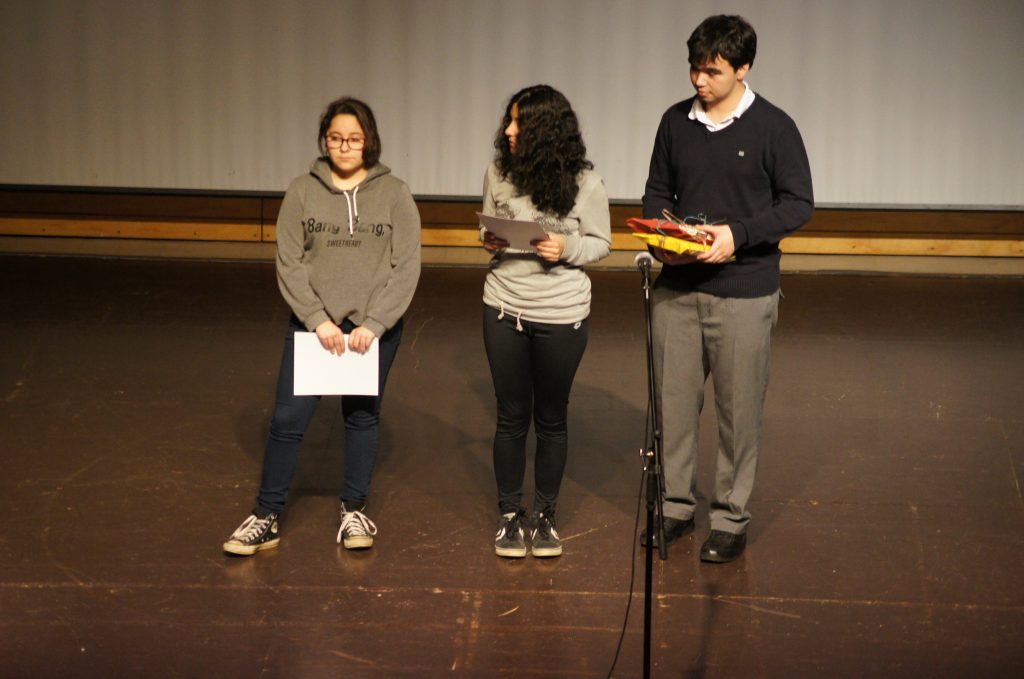 Primer Lugar: Inés Martina Delgado Galáz, Liceo Bicentenario; Matías Joaquín Tapia Silva, Instituto Salesiano; Nicole Andrea Legal Martínez, Colegio María Auxiliadora