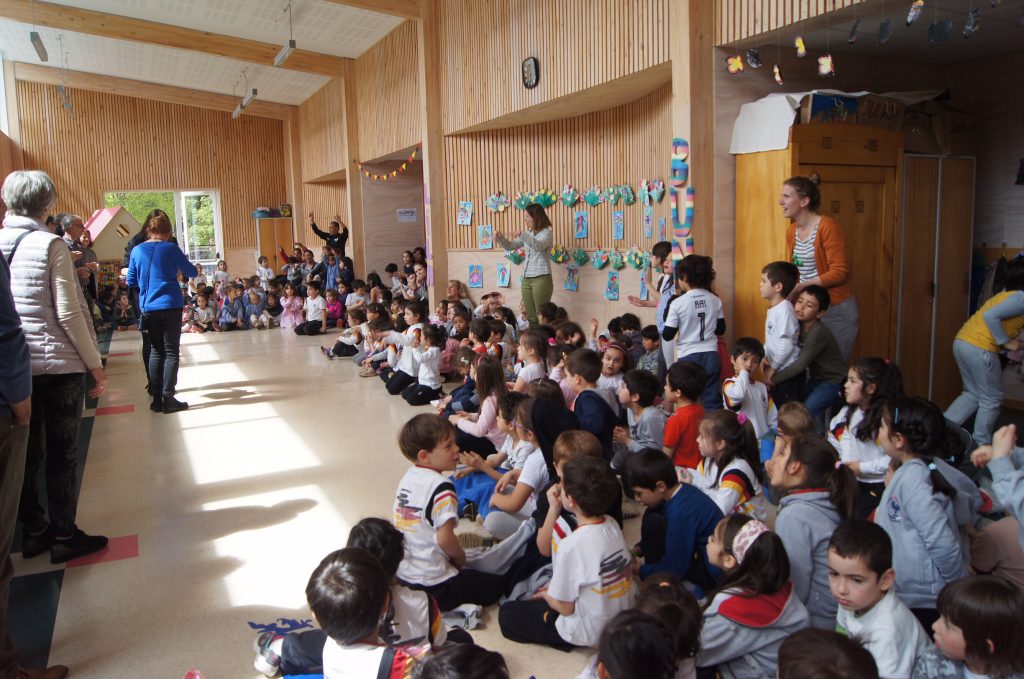 Ayer a mediodía brindaron un pequeño concierto en el hall de Kindergarten, para los alumnos del Preescolar, con quienes además cantaron en conjunto un par de temas.