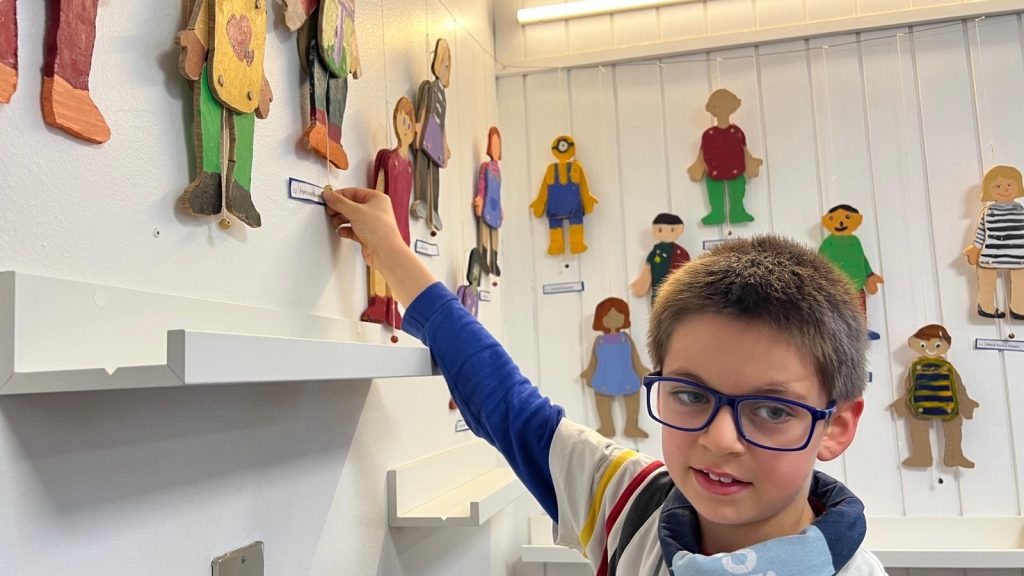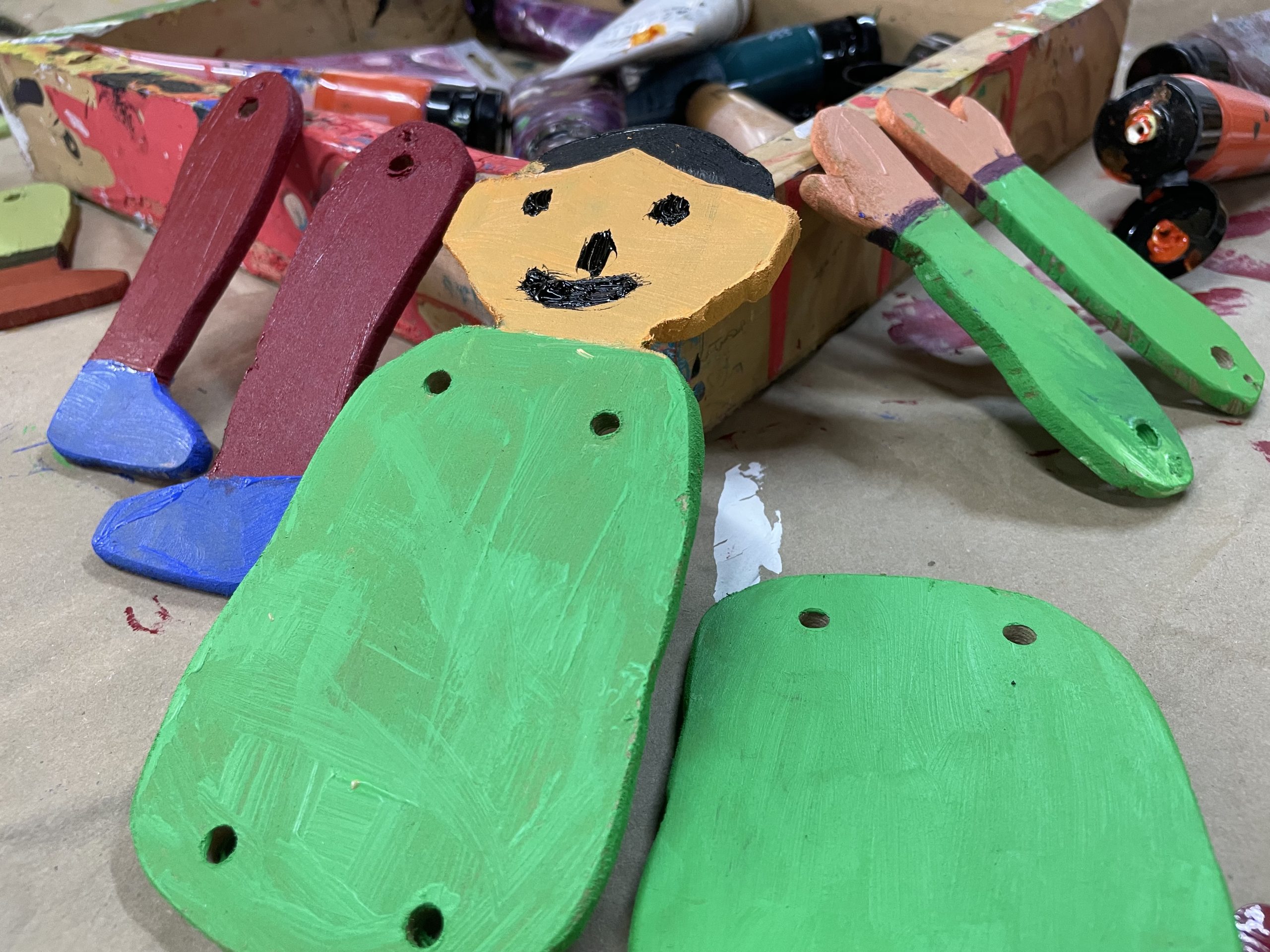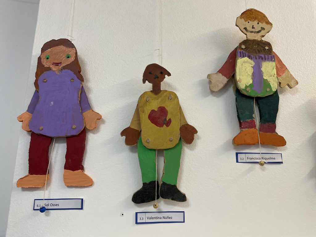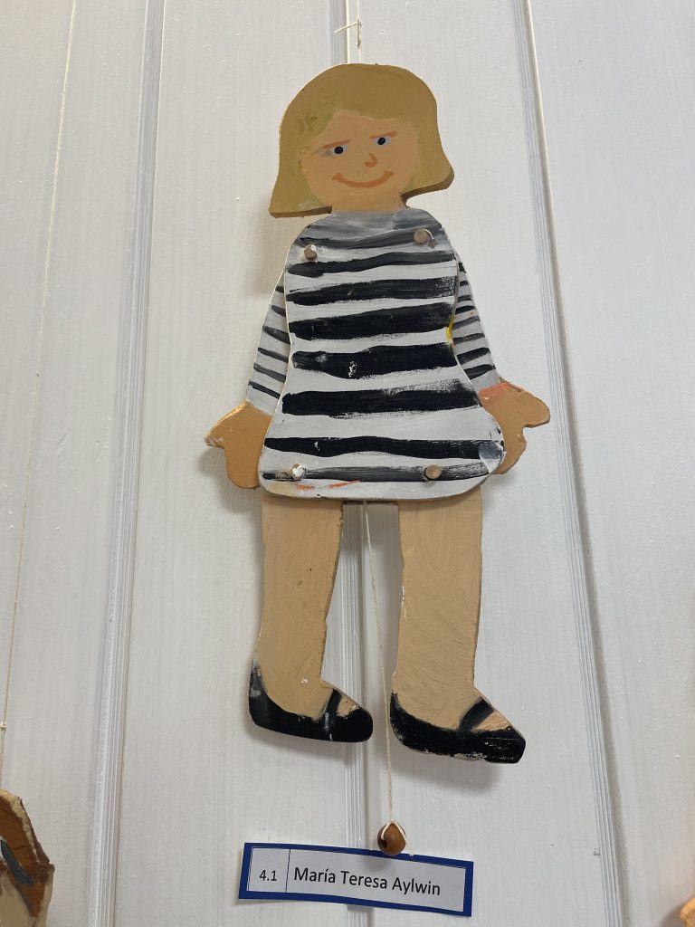 Los Hampelmänner —figuras articuladas que se animan al tirar de sus hilos, levantando brazos y piernas— fueron confeccionados en madera aglomerada utilizando sierra de calar y lija, y posteriormente decorados con dedicación y creatividad por sus jóvenes autores.