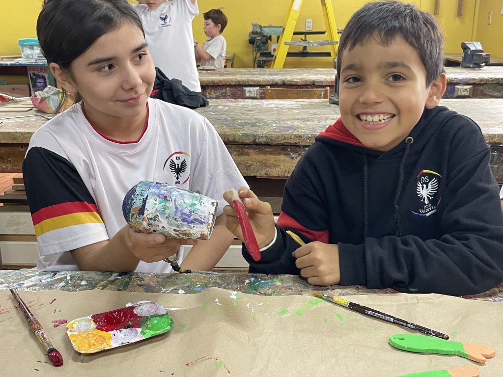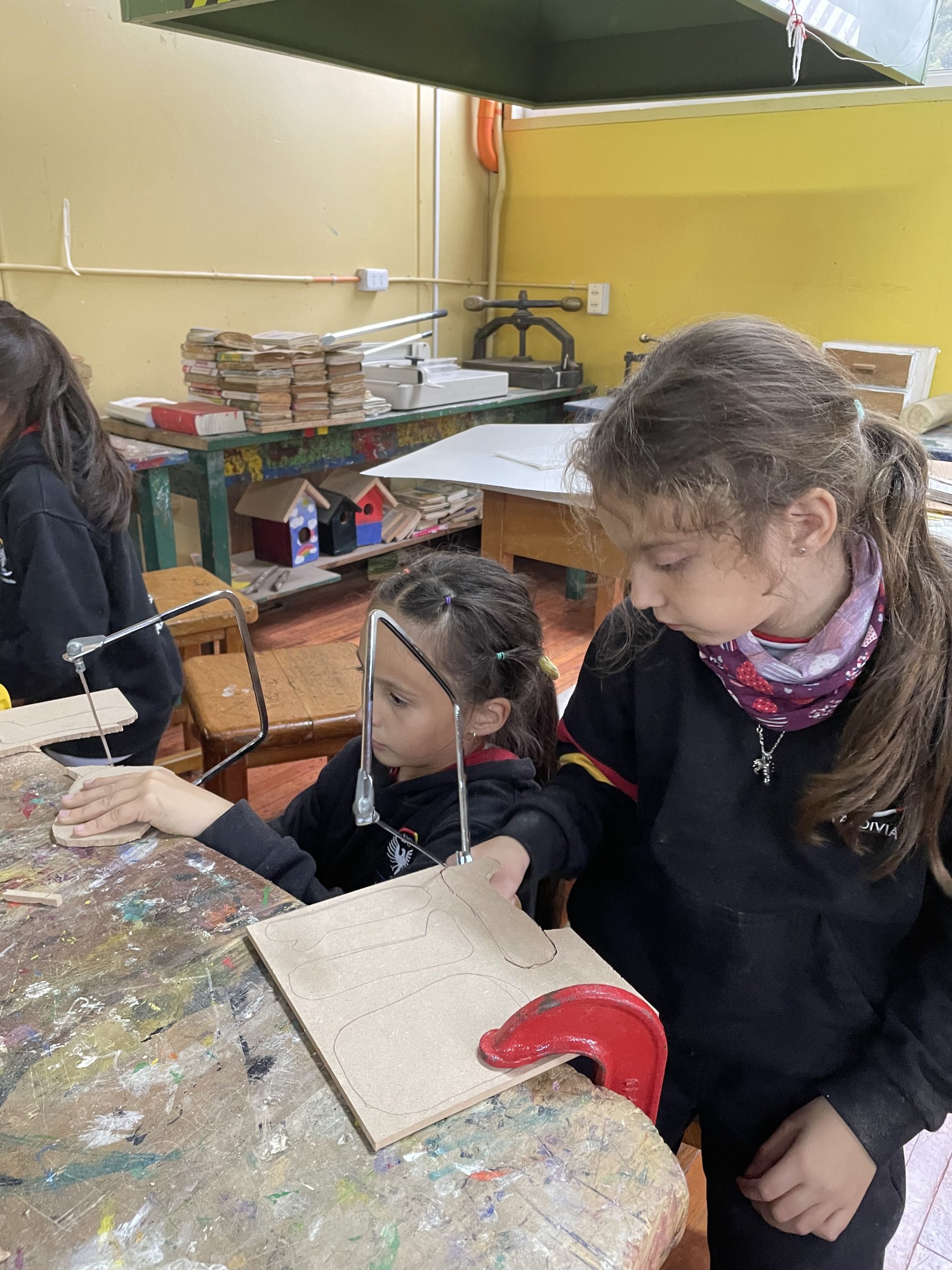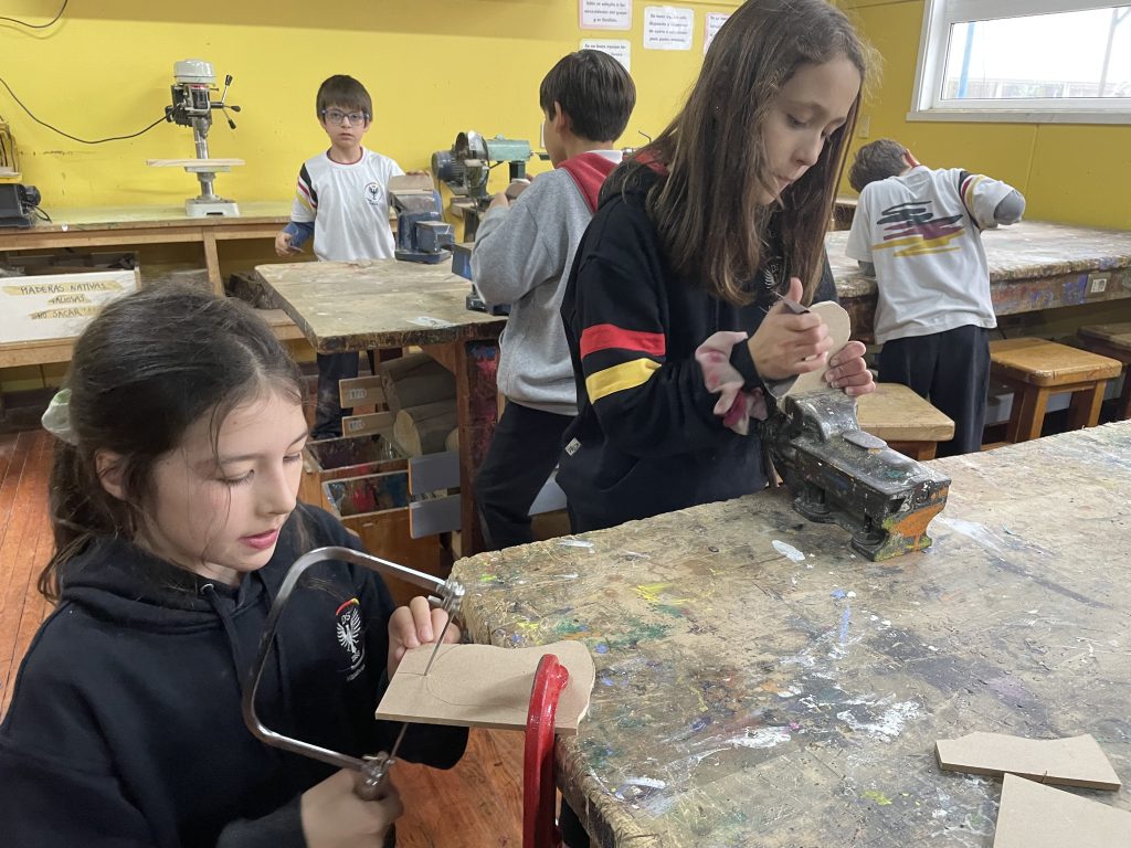 Este taller, impartido íntegramente en idioma alemán por la profesora Anita Schwarzenberg, convoca cada lunes a 18 estudiantes de 3º a 6º básico, quienes asisten con entusiasmo para desarrollar habilidades tecnológicas mediante el trabajo con madera y el uso seguro de herramientas.