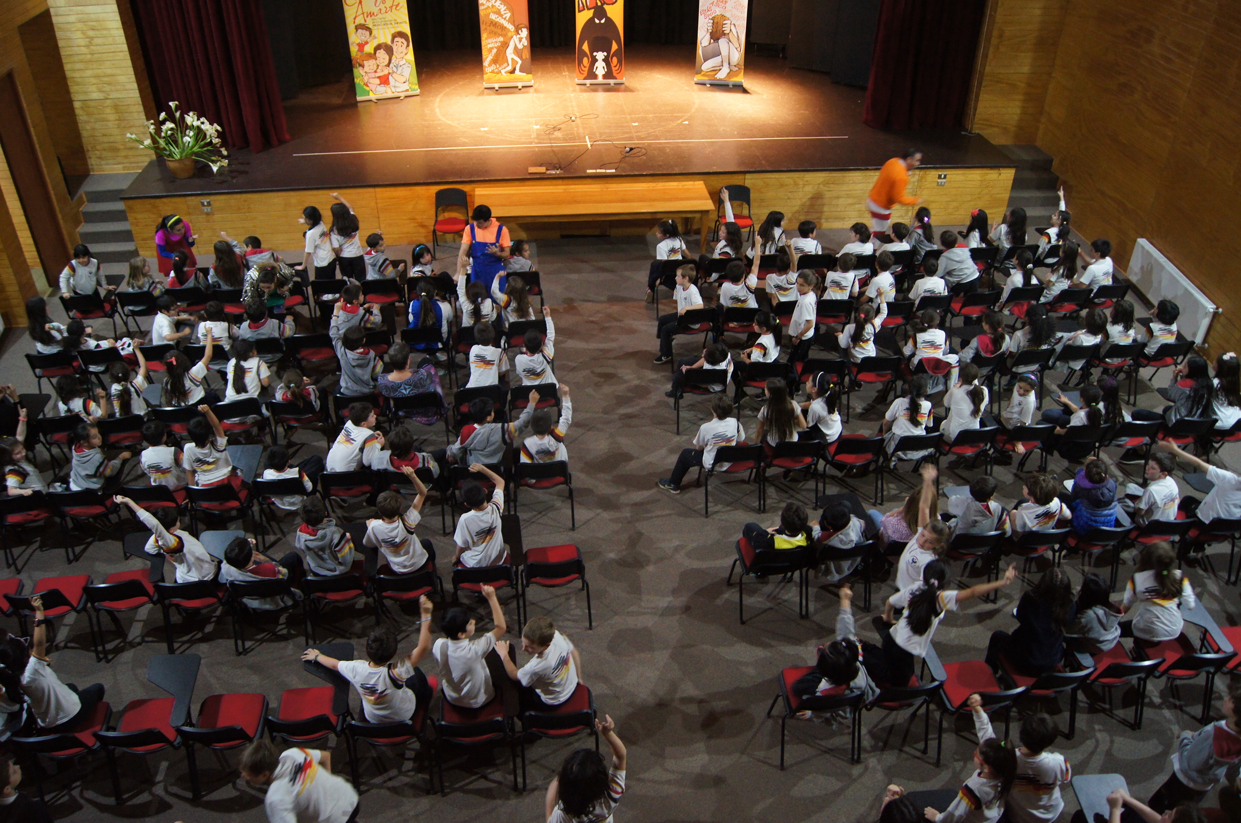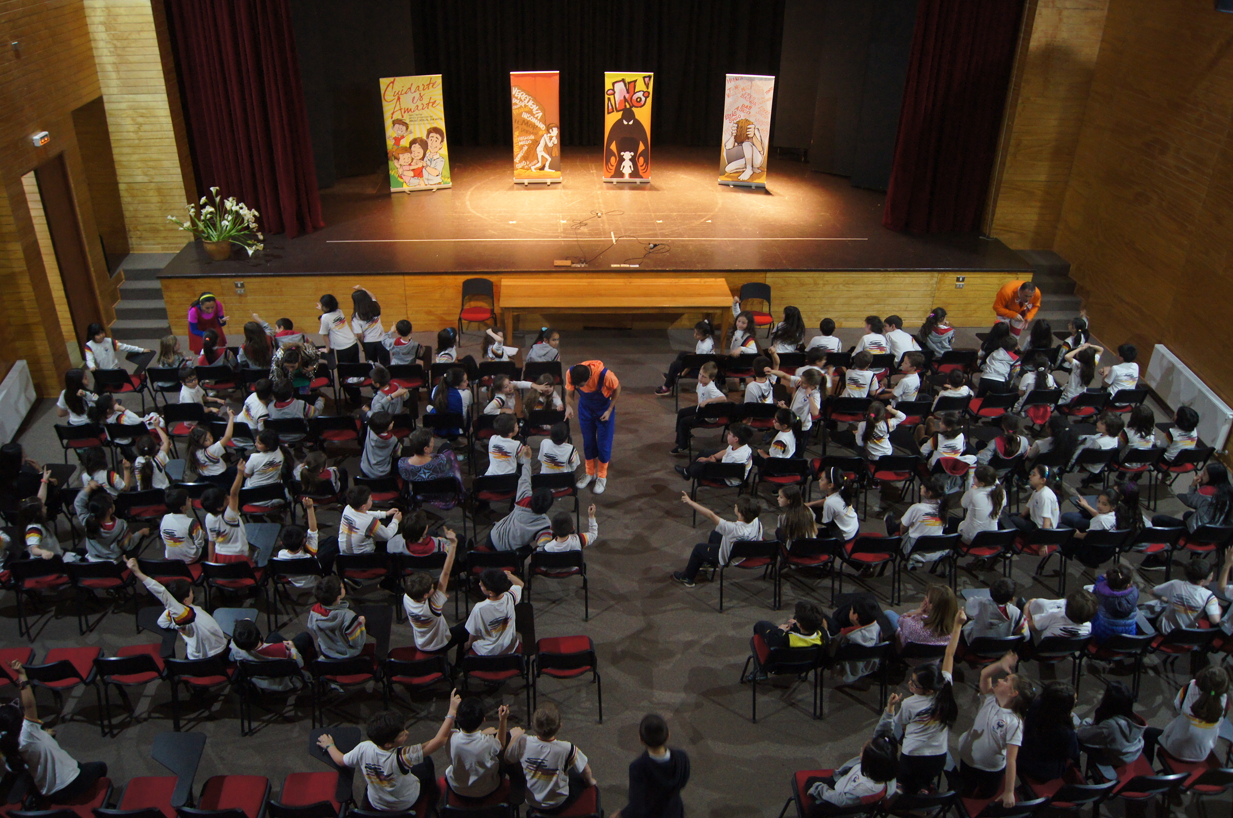Los alumnos de 2º, 3º y 4º básicos tuvieron la oportunidad de disfrutar con la obra montaje de la Compañía Oveja 100 “Cuidarte es amarte”, que aborda de una manera amena y didáctica las señales de alerta para que los niños identifiquen conductas abusivas. Esta actividad se suma al trabajo de prevención que se realiza con los alumnos en la asignatura de Orientación, en la que se trabaja prevención y autocuidado a través del Programa SAG (Sexualidad, Afectividad y Género). A la labor de prevención con los alumnos, además se agrega lo realizado en reuniones de apoderados con los 2º y 3º básicos, en las que se ha trabajado intensamente el tema.