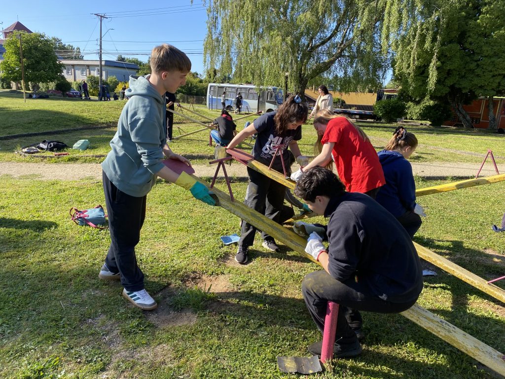 Unter der Anleitung ihrer Lehrkräfte Susanne Braun, Estrella Chamorro, Ingrid Provoste und Thomas Daul verwandelten die Schülerinnen und Schüler den Platz in einen schöneren und funktionalen Ort.
