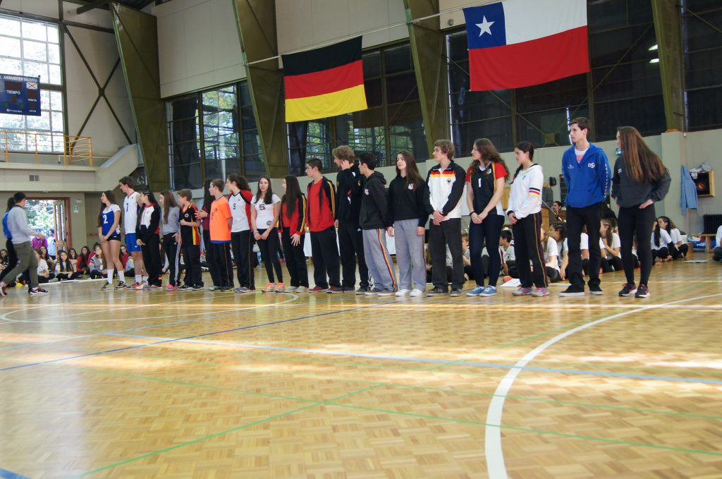 Eduardo Schott, der die Veranstaltung moderierte, bedankte sich im Namen der Schule bei den Vertretern des Elternbeirats Alexia Wolodarsky, Carla Bizama, Rafael Foradori, Gisela Romeny und Ilona Slebe sowie bei den Müttern Marcela Kuerten und Natalie Bluas für ihre Unterstützung. Ebenso dankte er den Hilfskräften unserer Einrichtung für ihren konstanten Einsatz, der Escuela Alemania, der Universidad Austral de Chile und der Universidad San Sebastián für die Bereitstellung ihrer Turnhallen und Jimmy Davis, der sämtliche Teilnehmer zu einem Bootsausflug eingeladen hatte. Des Weiteren lobte er die Schüler des IBs, die den Teams während der Meisterschaft als Betreuer zur Seite standen und betonte die umfassende Berichterstattung der Lokalzeitung El Diario Austral de Valdivia.