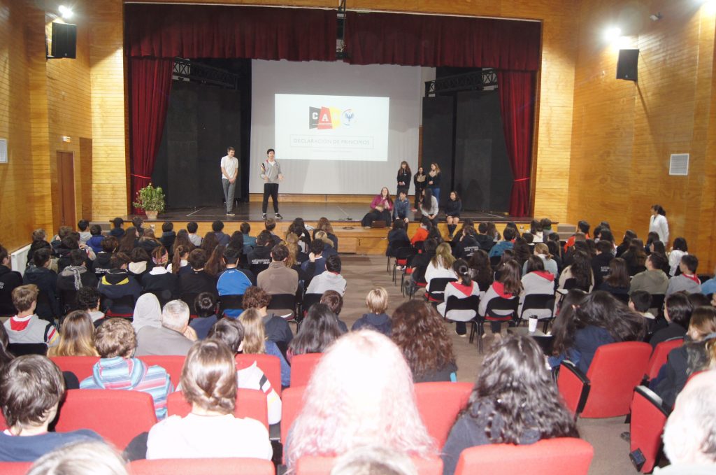 Lucas González, presidente del CAA, realizó la introducción al tema y comentó a sus compañeros la importancia de una buena y sana convivencia dentro de nuestra comunidad escolar y qué implica ello para cada uno de sus integrantes.