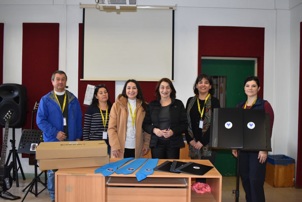 A partir de este año, cada una de las tres orquestas y el Coro Juvenil cuenta con su propia directiva, conformada para coordinar acciones de apoyo y financiamiento de insumos. Gracias a los aportes reunidos, se concretó la compra de atriles, carpetas y pañuelos para uniformar a los coros con el logo de Música. La entrega se realizó el viernes 26 a la profesora Renate Hagedorn, Jefe del Departamento de Educación Musical.