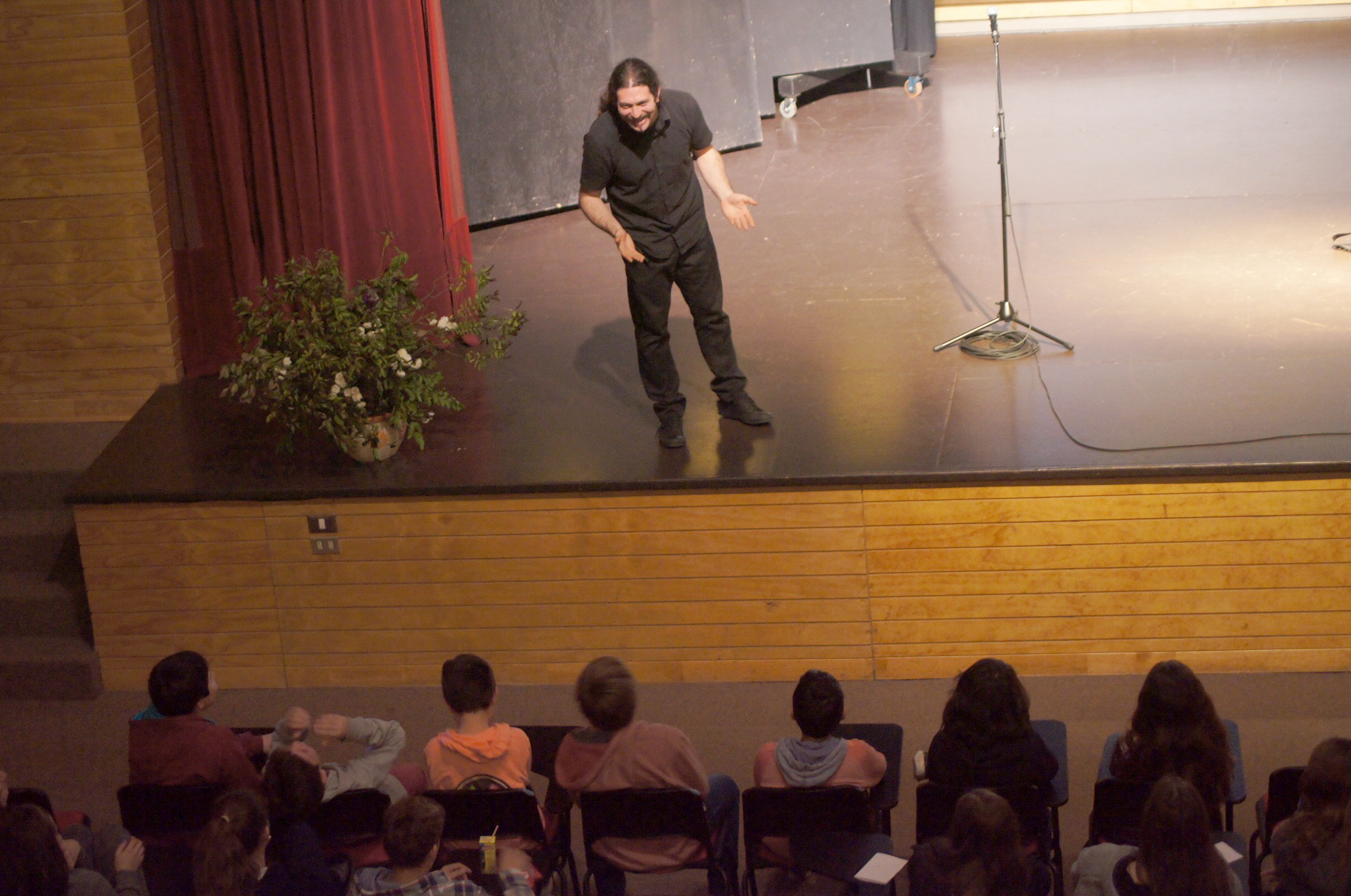 20.06.2016 Am Freitag war der E-Bassist Mauricio Nader auf Initiative der Schülervertretung und des Deutsch Chilenischen Bundes zu Gast an der Schule. Mittags sprach er im Auditorium vor Siebt- bis Zwölftklässlern über seinen Werdegang und abends gab er ein Konzert.