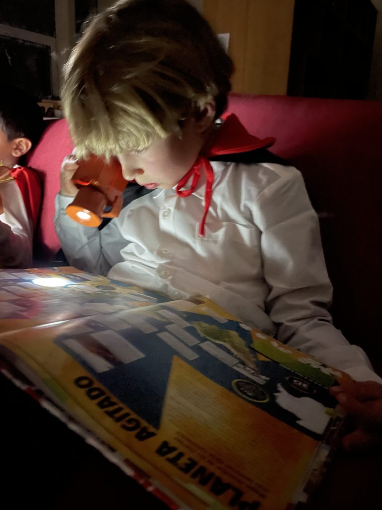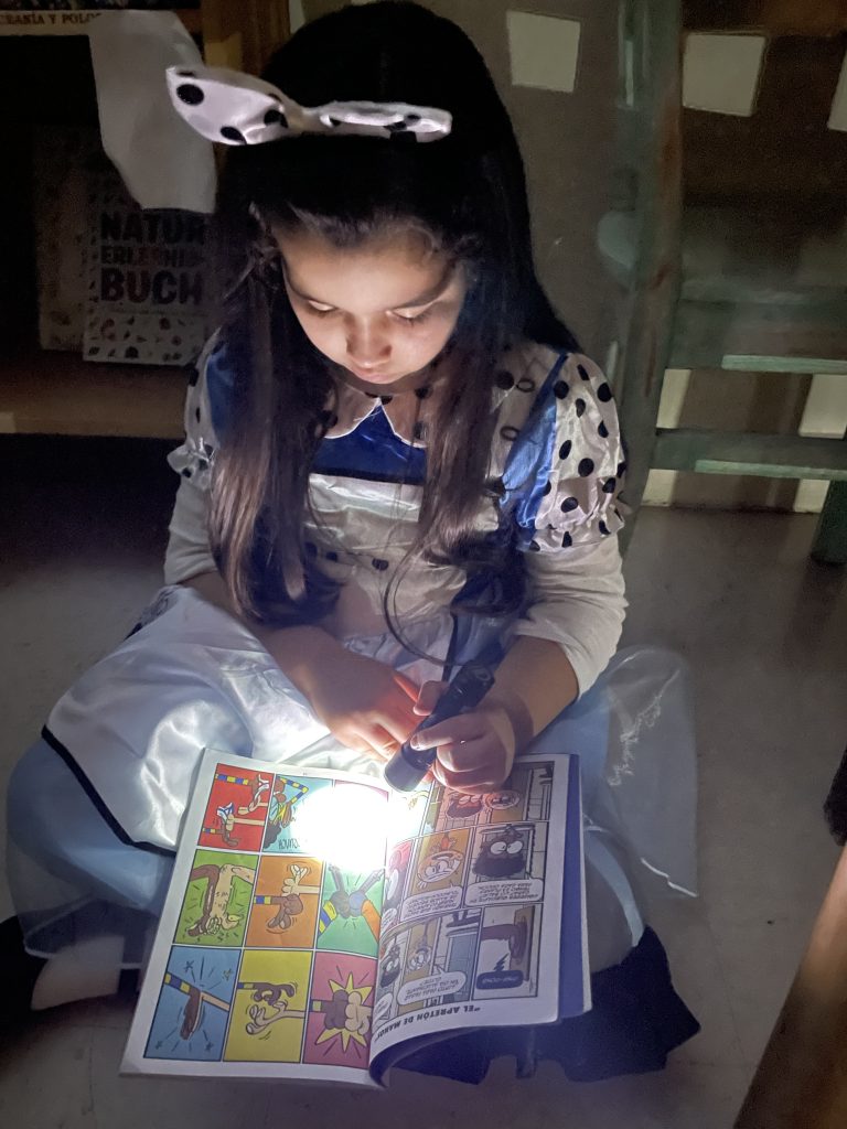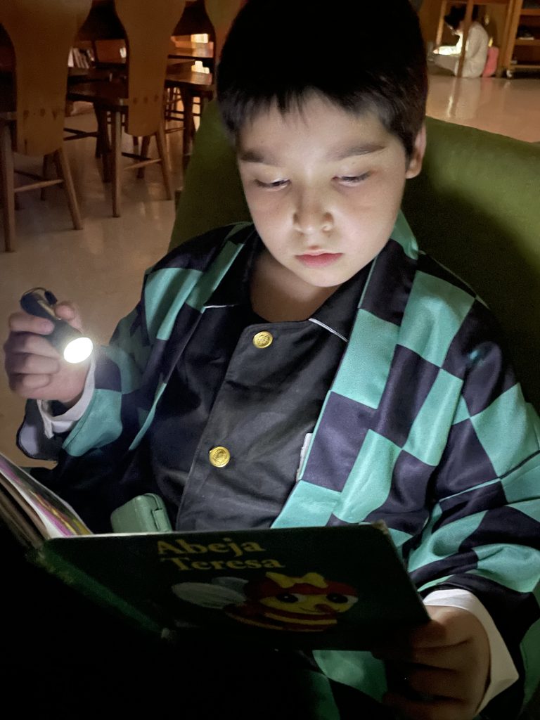 El curso 2.2 participó en la “Noche de historias encantadas”, experiencia lectora que propone un ambiente íntimo y cuidado en el espacio de Biblioteca: luces atenuadas, silencio y recorridos con linternas para descubrir libros y cuentos de manera significativa. Estas instancias buscan fortalecer el vínculo de los estudiantes con la lectura desde vivencias memorables y guiadas pedagógicamente