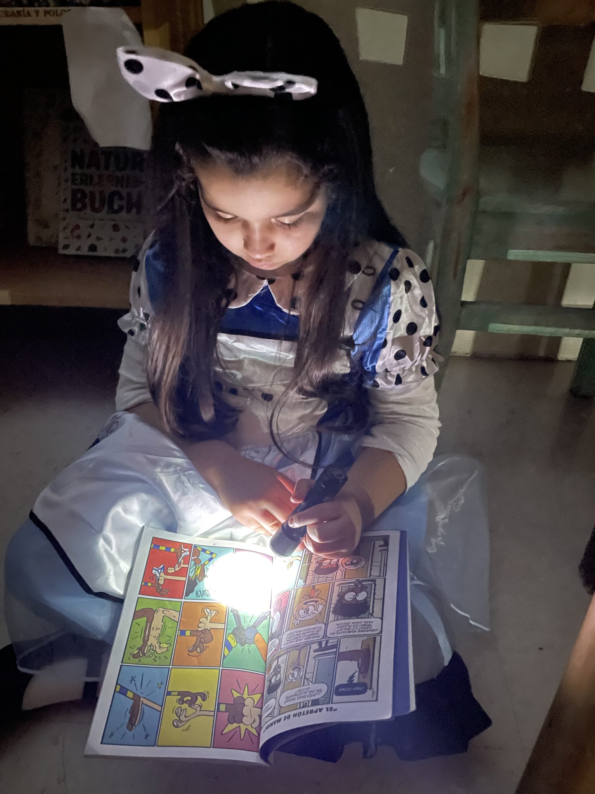 El curso 2.2 participó en la “Noche de historias encantadas”, experiencia lectora que propone un ambiente íntimo y cuidado en el espacio de Biblioteca: luces atenuadas, silencio y recorridos con linternas para descubrir libros y cuentos de manera significativa. Estas instancias buscan fortalecer el vínculo de los estudiantes con la lectura desde vivencias memorables y guiadas pedagógicamente