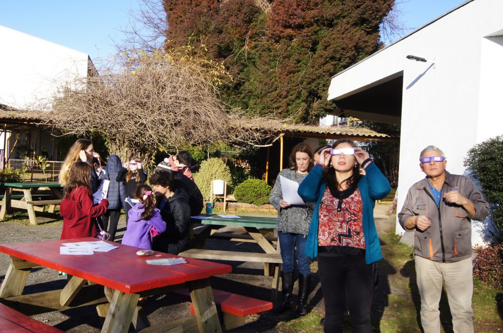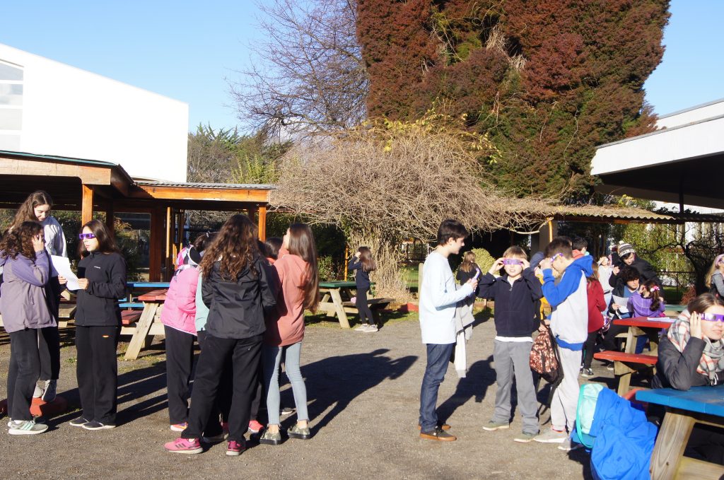 Además, se fueron sumando profesores y funcionarios para apreciar el fenómeno, quienes por turno también hacían uso de los lentes especiales.